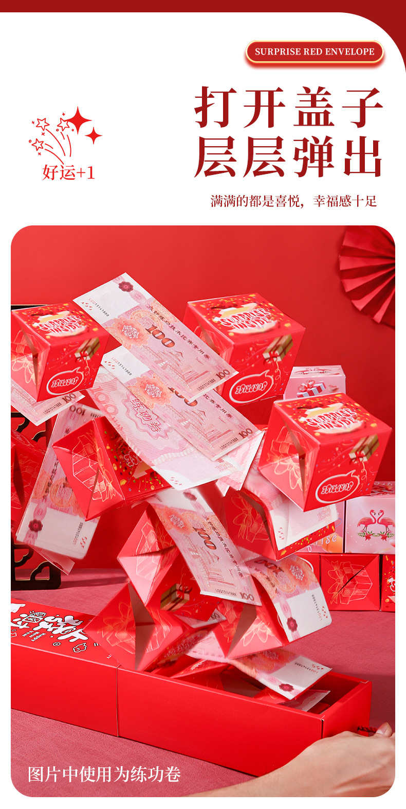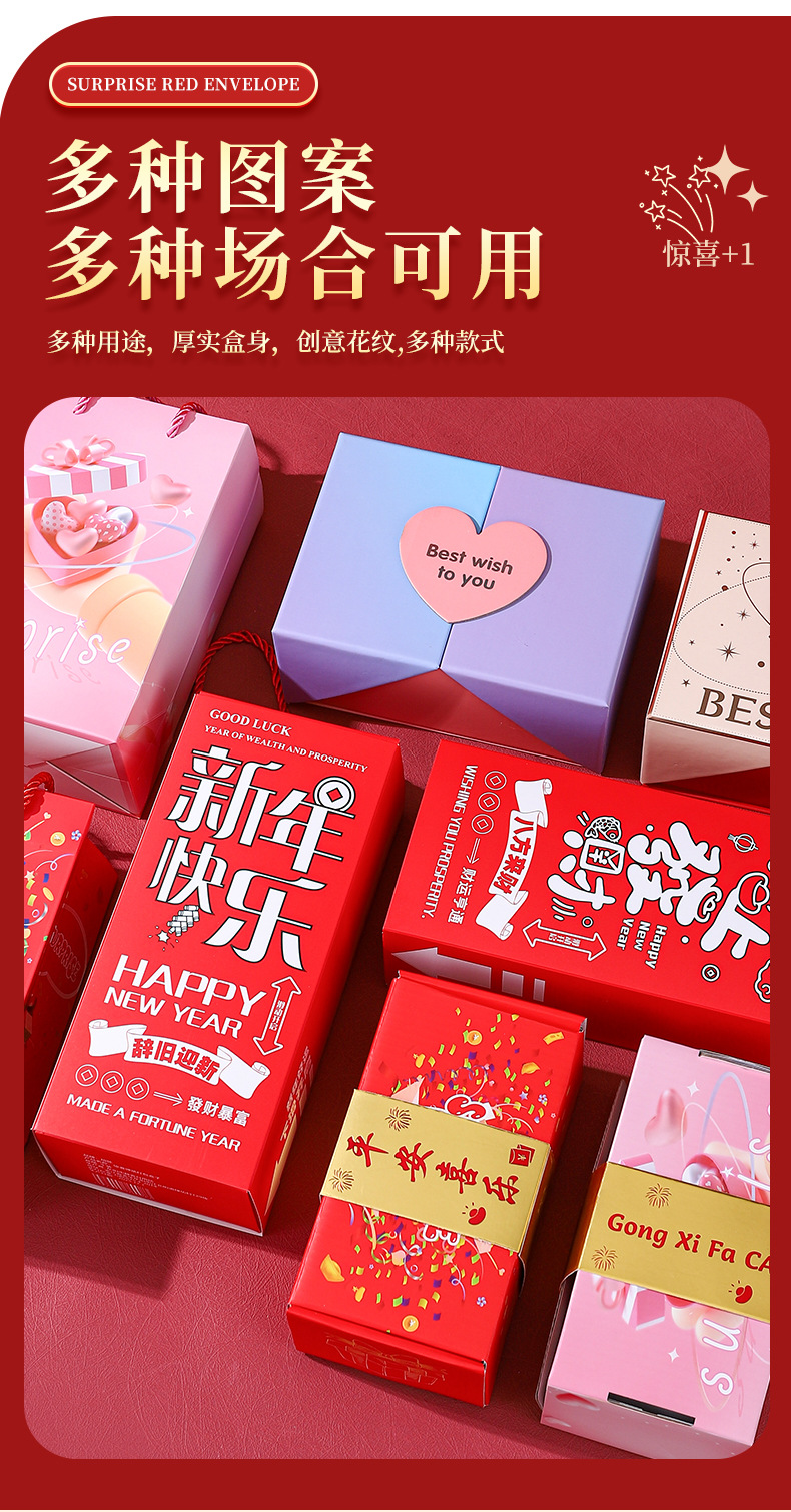 春节生日红包惊喜弹跳盒子满天飞折叠爆炸弹射红包创意礼盒现货