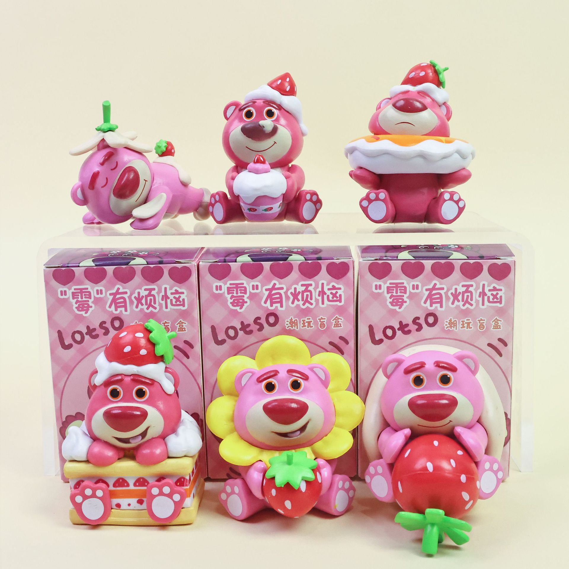 6種類のいちご熊スイーツパーティーシリーズ人形機プレゼントアニメpvc手作りかわいいデスクトップ装飾品ブラインドケース