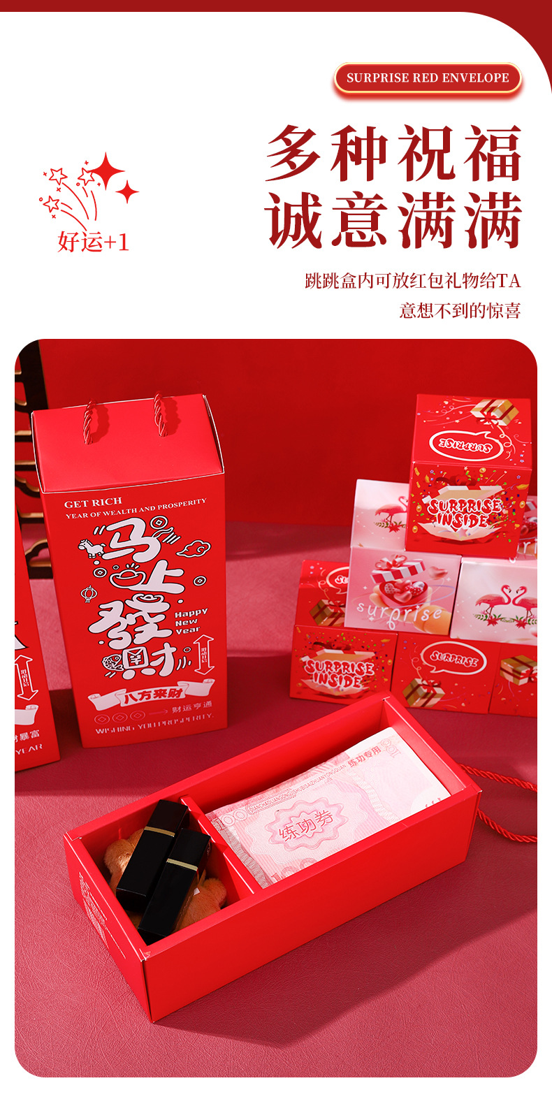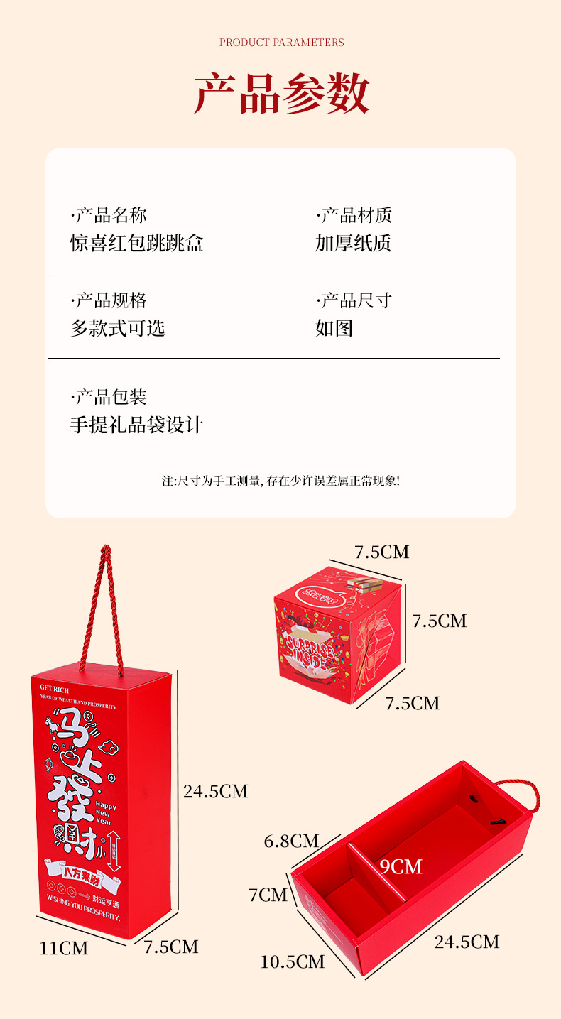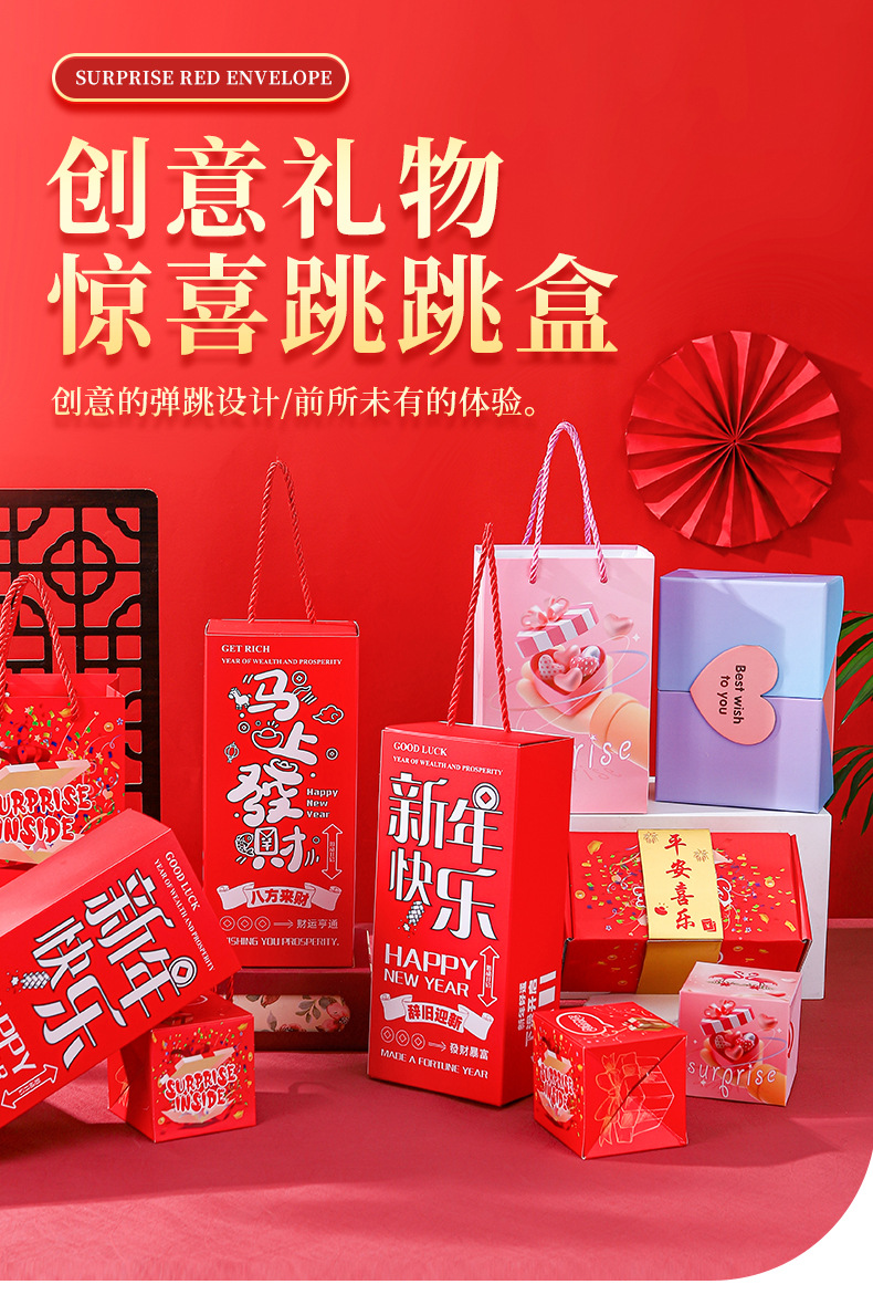 新年惊喜弹跳盒子创意红包礼盒爆炸弹射跳跳盒仪式感马年过年礼物