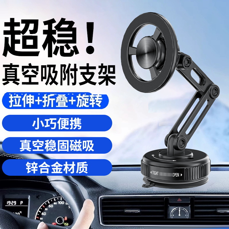 クロスボーダー爆型車載折り畳みスタンド無極調節車家両用ナビゲーション超強力真空吸着磁気吸引スタンド