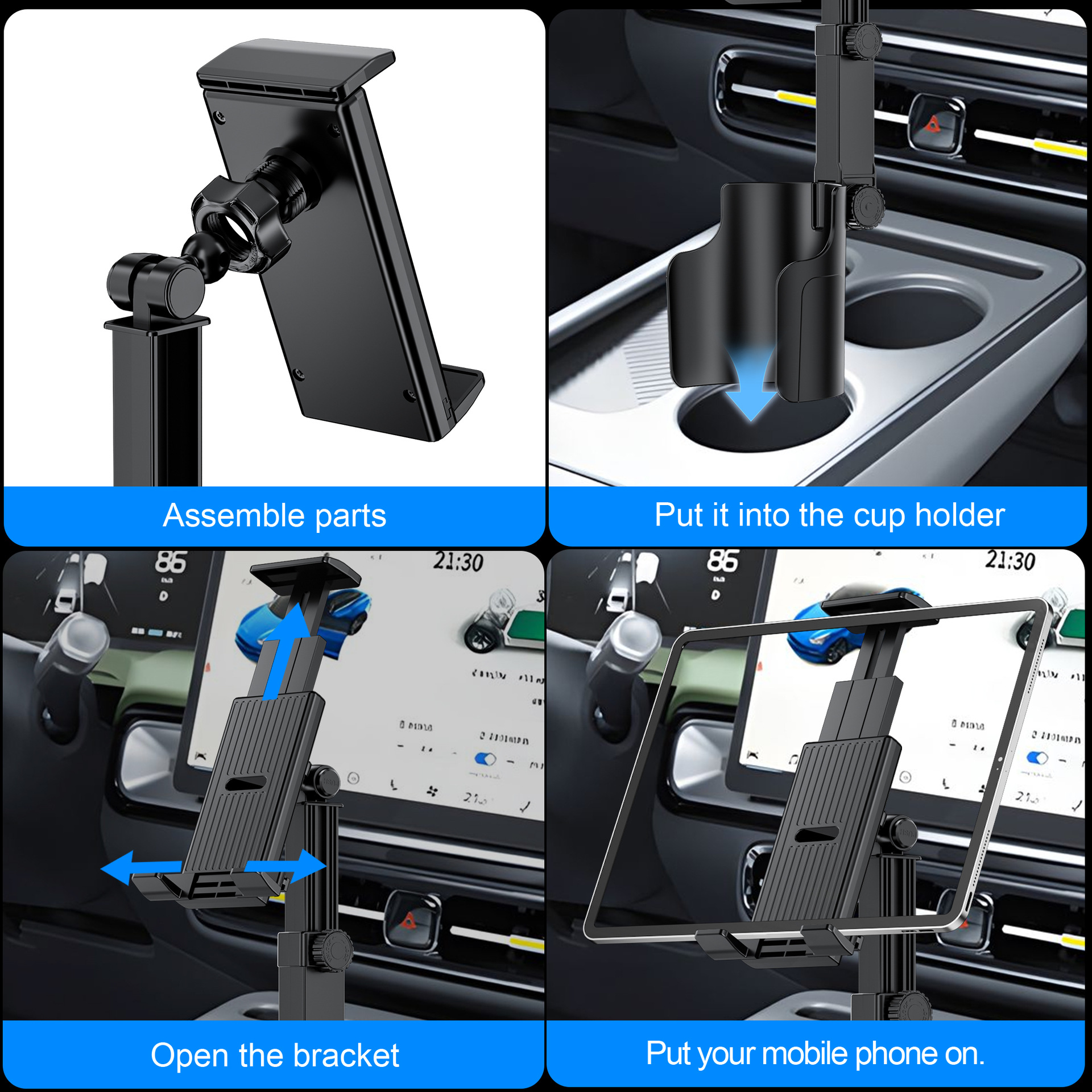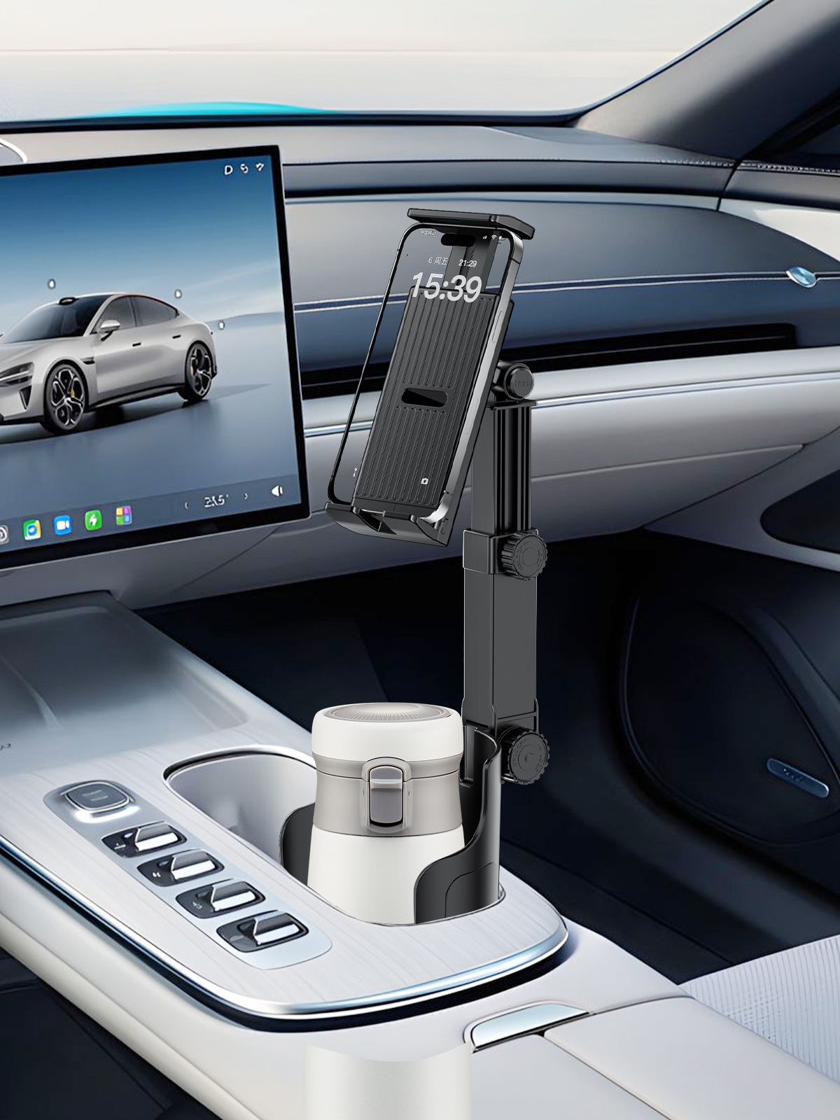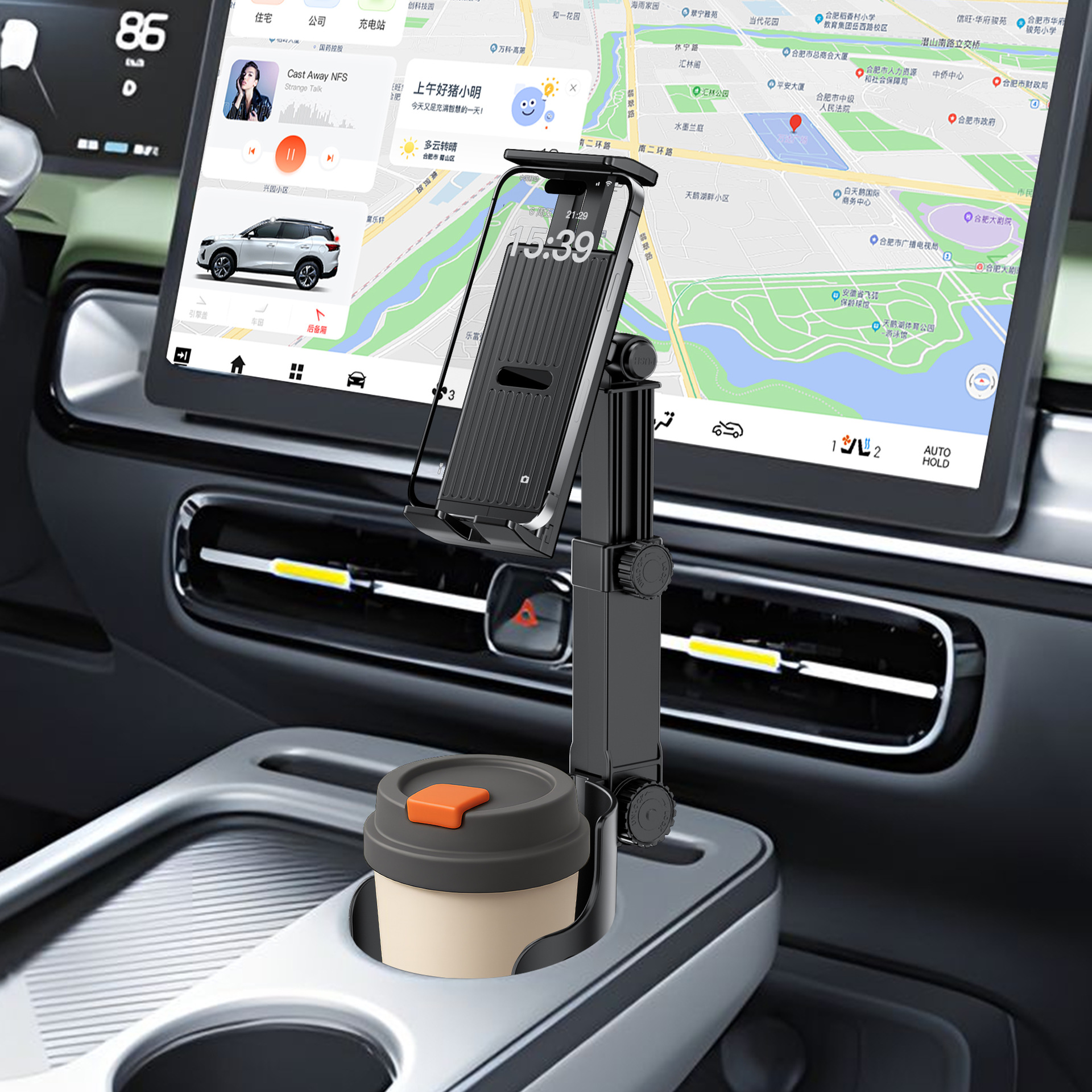 新款车载水杯架 汽车平板手机水杯架双用二合一车载水杯槽架子