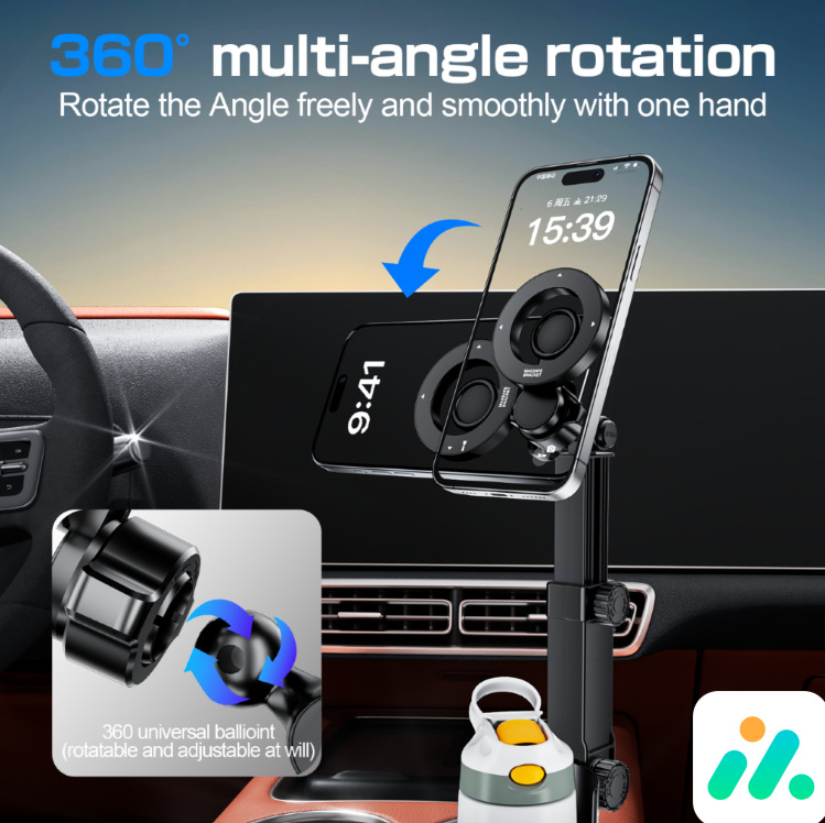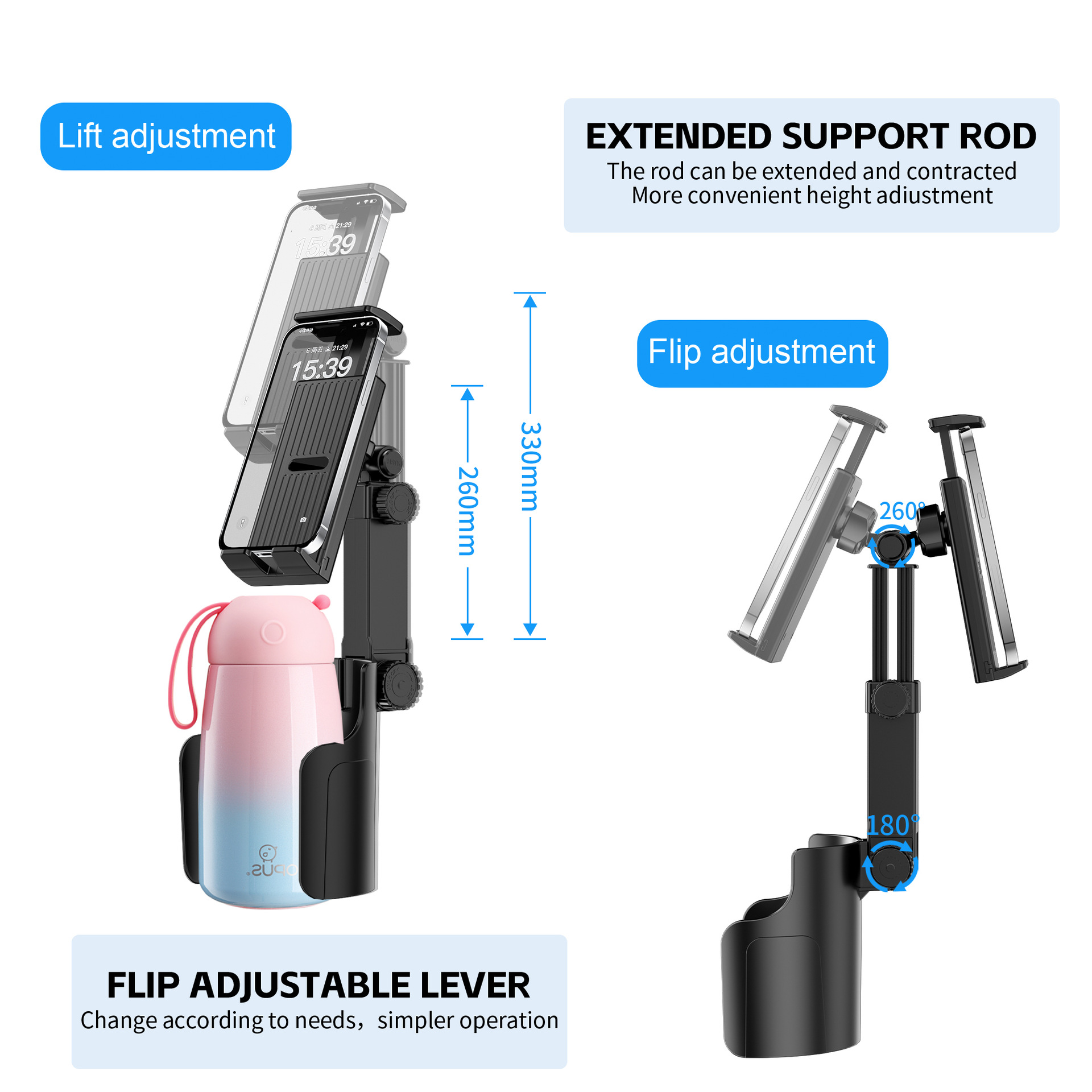 跨境爆款新品磁吸手机支架水杯支架多功能车载导航伸缩架源头厂家