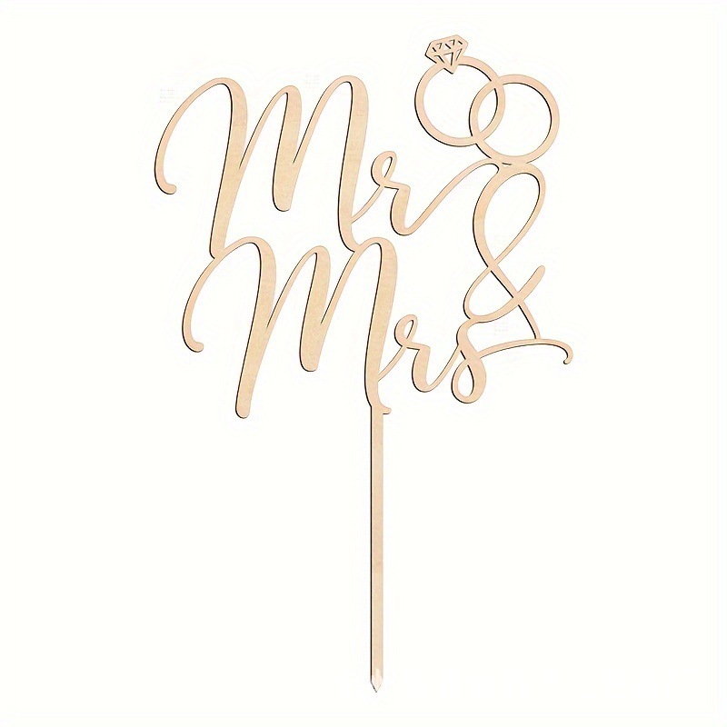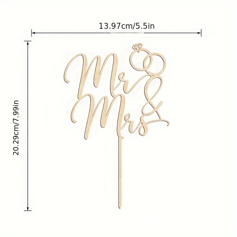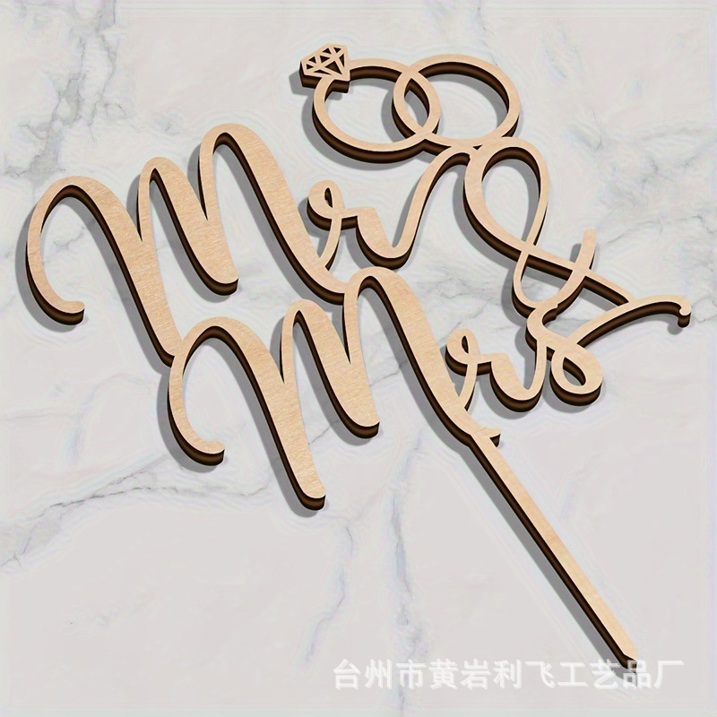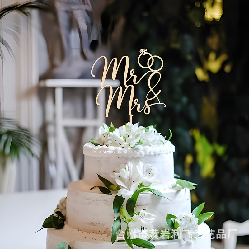 跨境新款木质婚礼蛋糕插Mr&Mrs先生夫人钻戒结婚派对装饰插牌