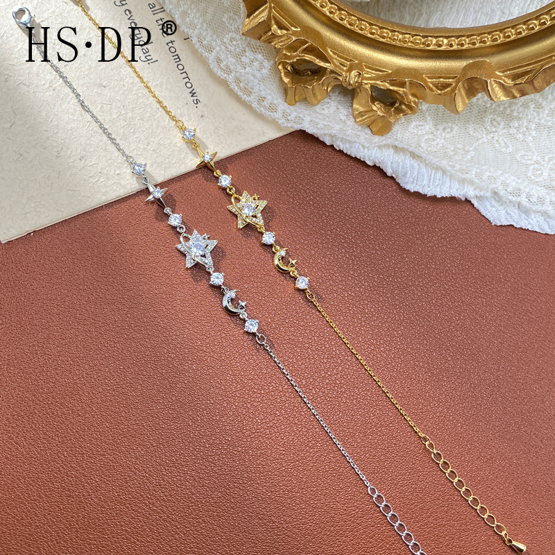 法式气质轻奢时尚锆石芒星星月手链女精致百搭高级感超闪手饰批发