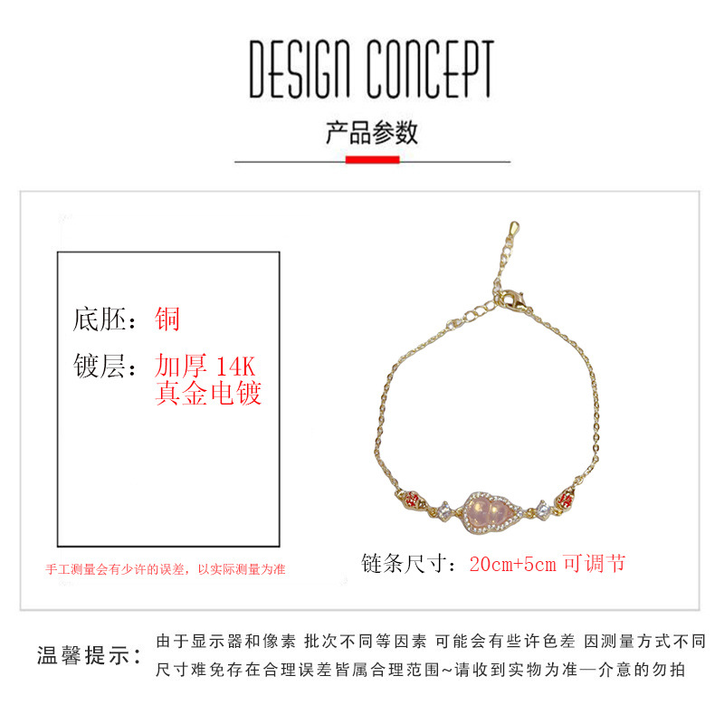 新中式时尚简约镶钻招财葫芦手链个性轻奢百搭设计感超闪手饰批发