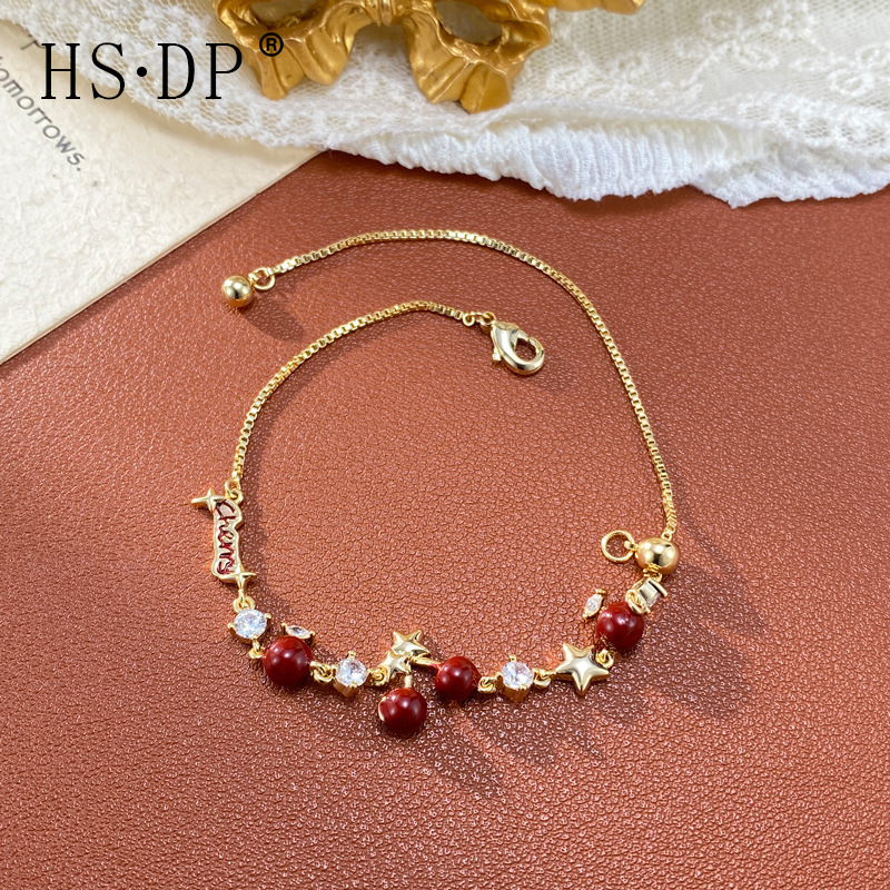 轻奢百搭锆石英文红色樱桃手链女气质时尚简约高级感超闪手饰批发