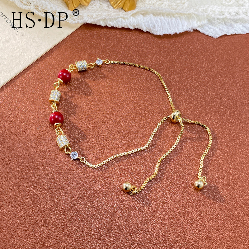 精致时尚微镶锆石小蛮腰串珠抽拉式手链气质轻奢百搭设计手饰批发