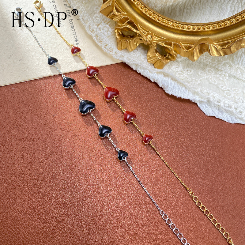 欧美跨境时尚简约黑红双面滴油爱心手链个性轻奢百搭设计感手饰女