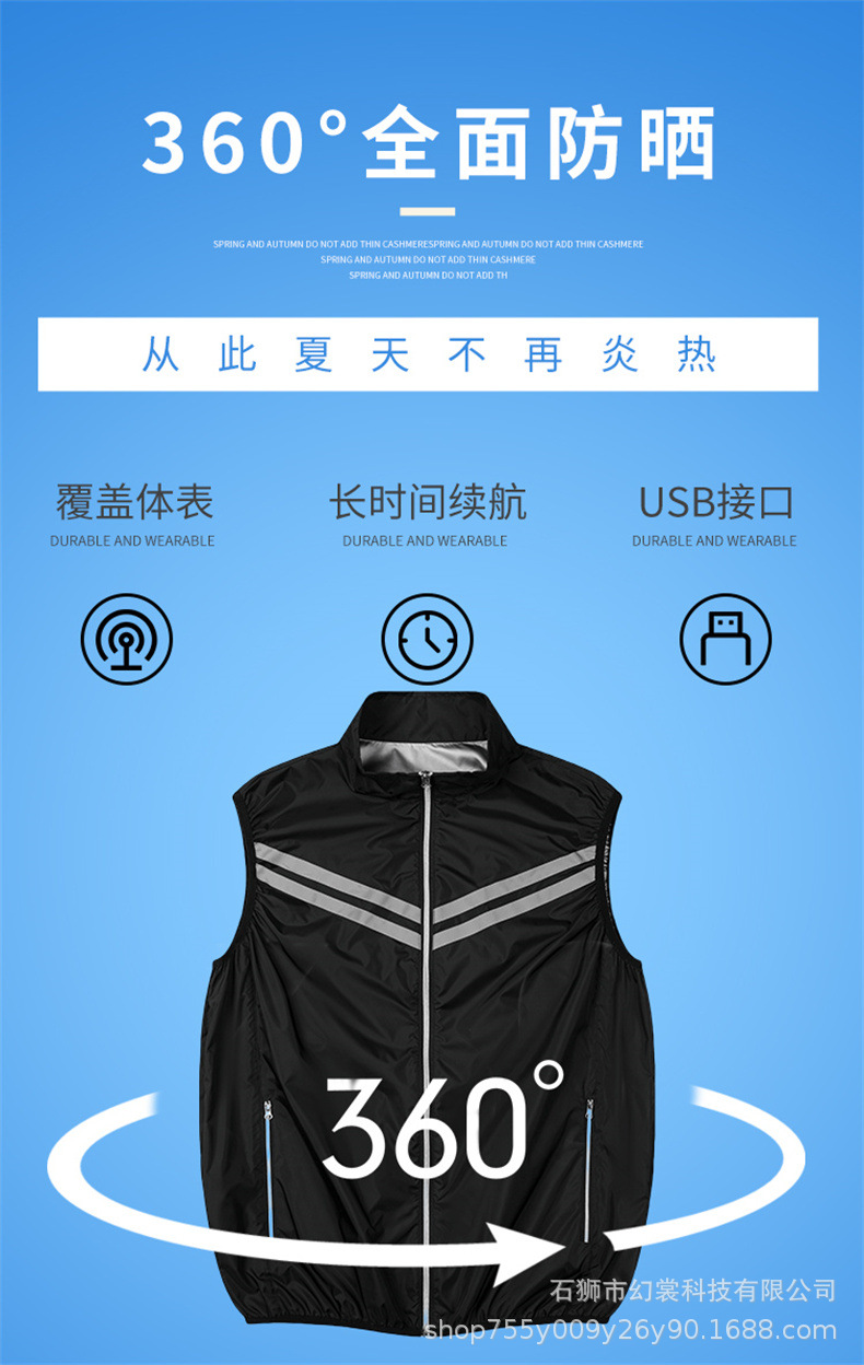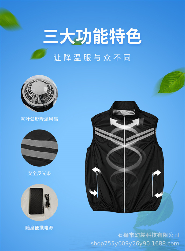 夏の温度を下げる馬甲は反射バーの扇風機の服を持っています。