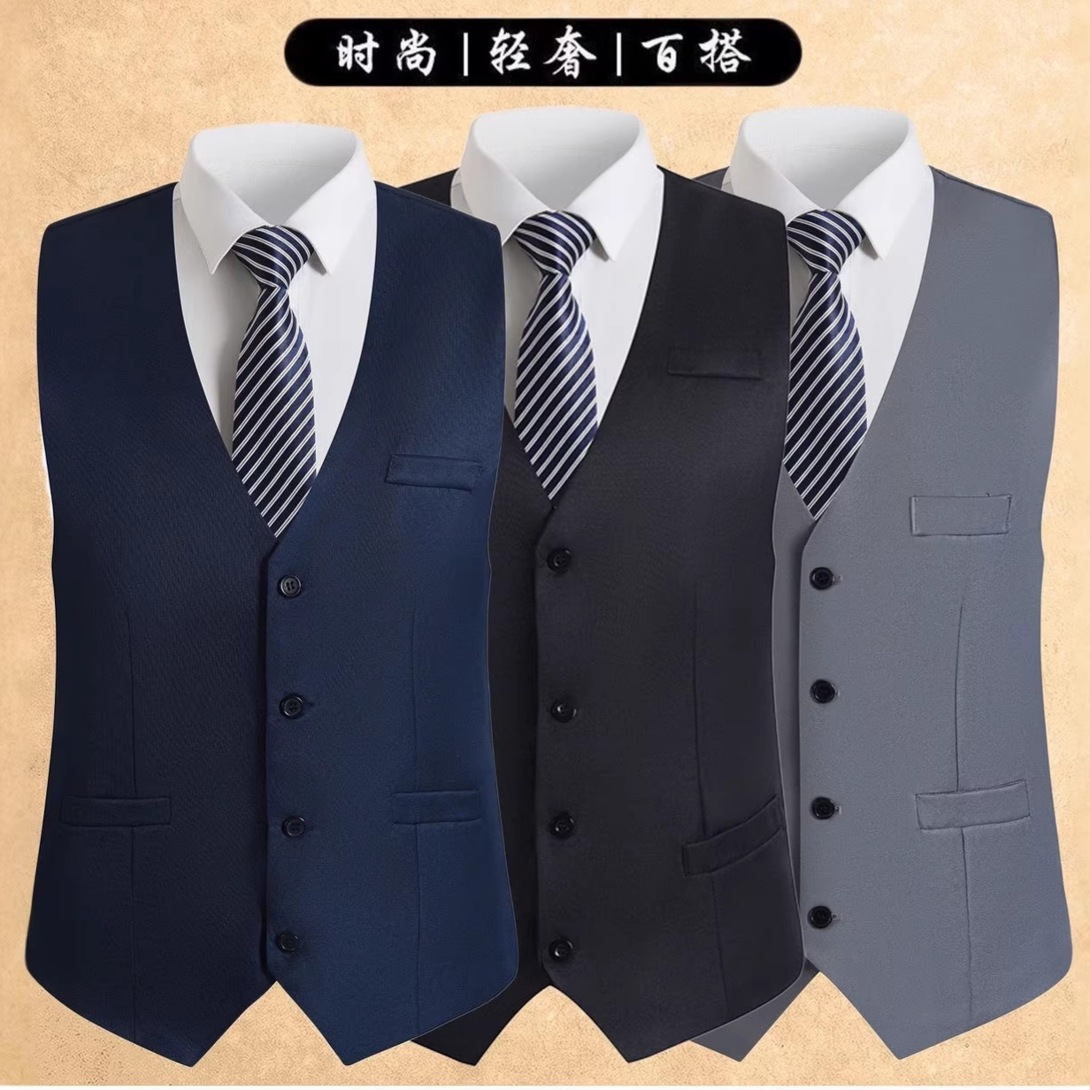 跨境男装春夏薄款男士西装马甲男新郎英伦背心伴郎职业商务马夹男