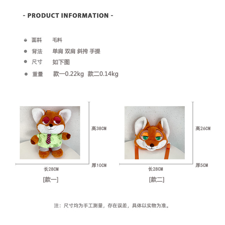 秋冬新款卡通双肩包尼克朱迪立体公仔玩偶包少女心单肩百搭手提包