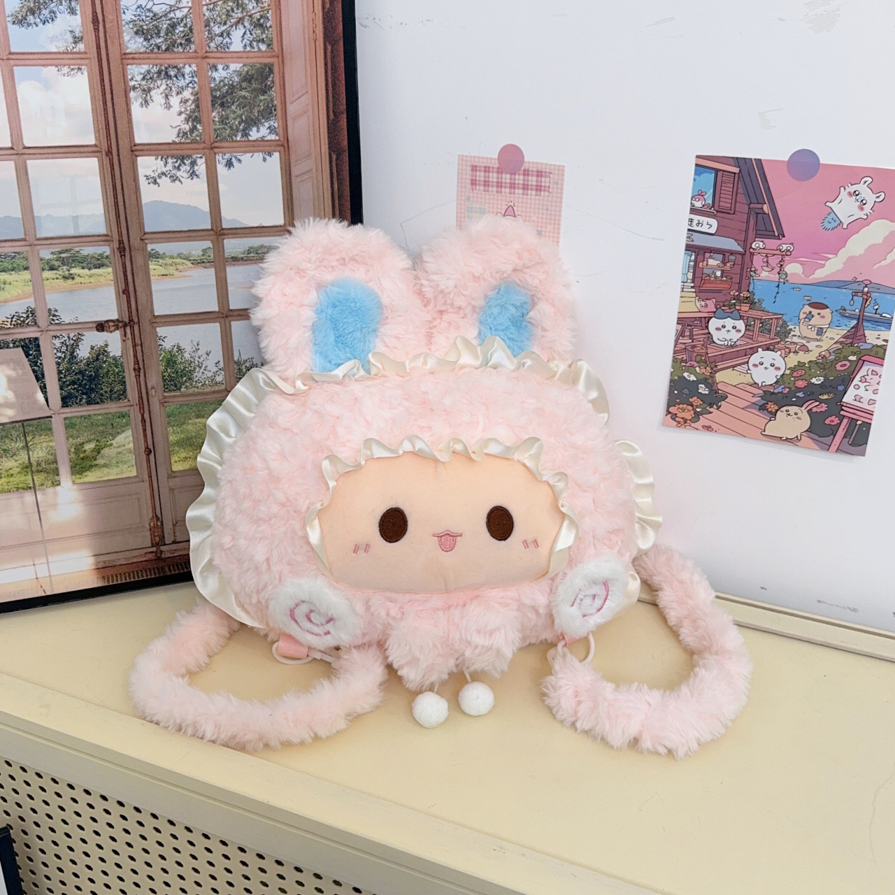 新款卡通兔子狐狸双肩背包女2025冬季可爱大容量超萌双背斜跨包包