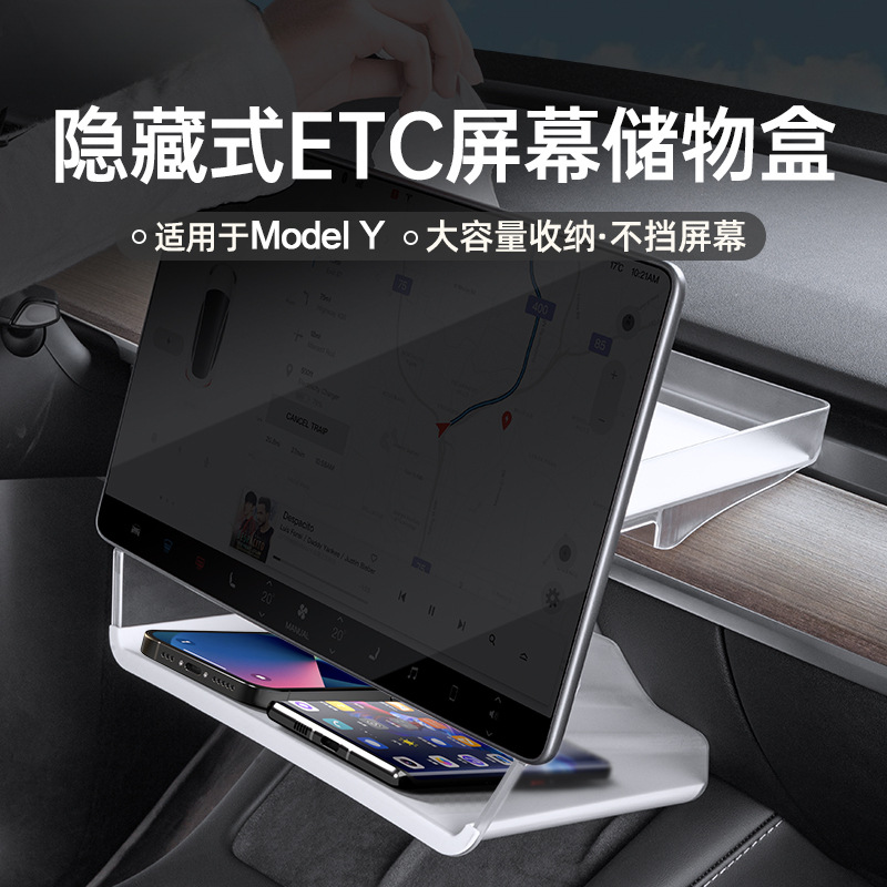 テスラ用スクリーン下収納ボックス、モデルY3センターコンソールペーパータオル収納、ETCホルダー、浮遊透明