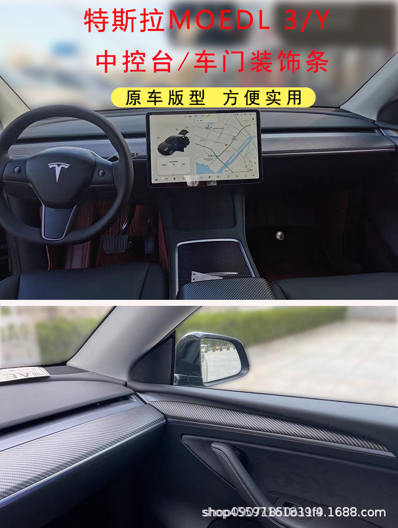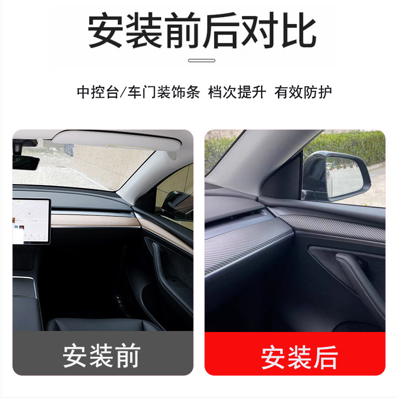 适用于特斯拉Model3/Y中控台装饰内侧板车门装饰条车内饰改装配件