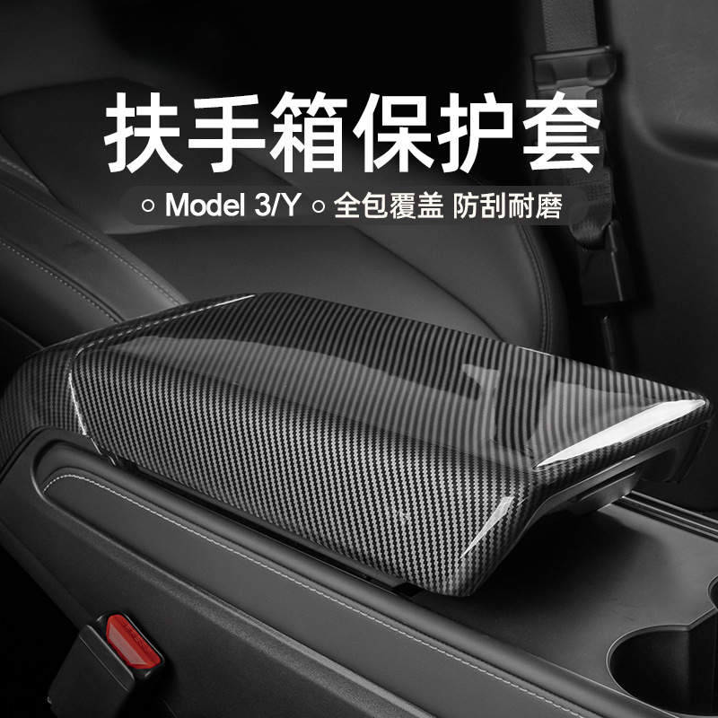 テスラmodel 3/Y手すり箱カバー炭素繊維紋保護カバーの中制御内装改造に適しています。