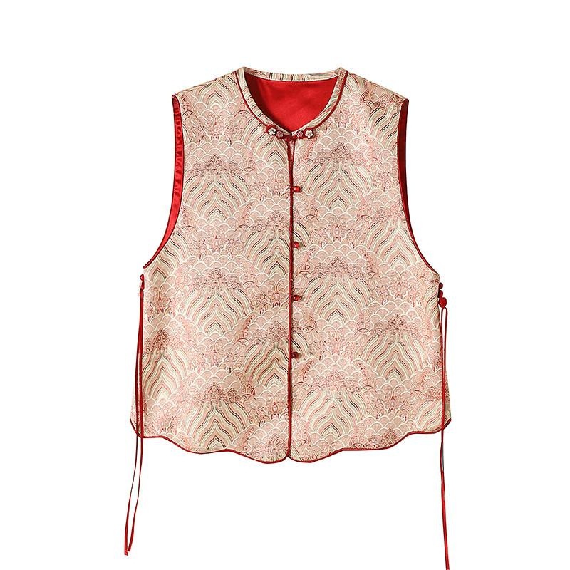新中国風ピンクジャカードベスト女性2025年新作春今年流行の綺麗な上着