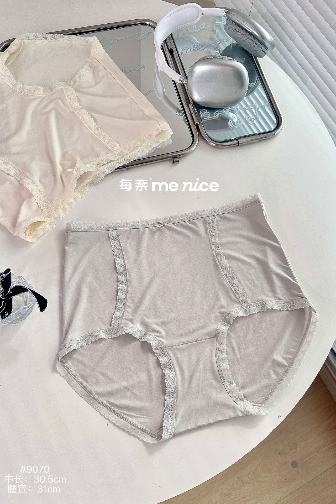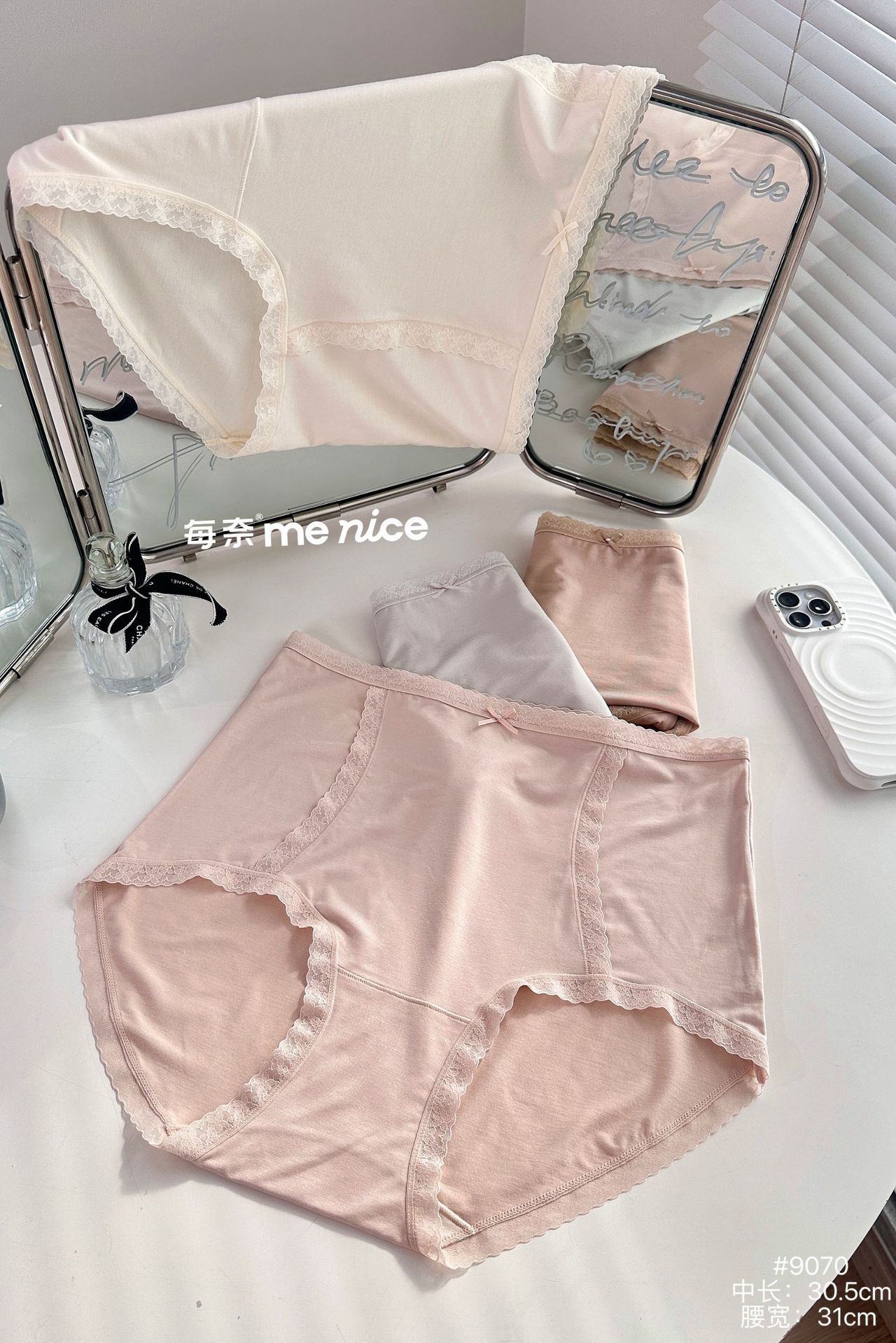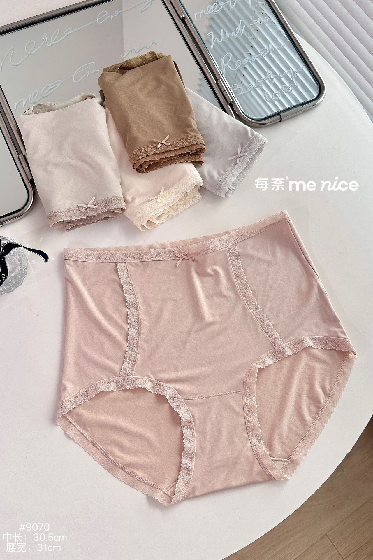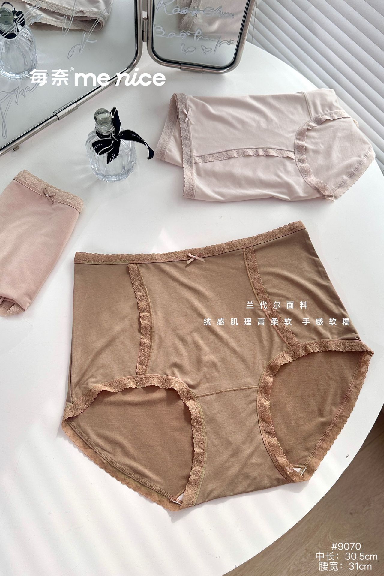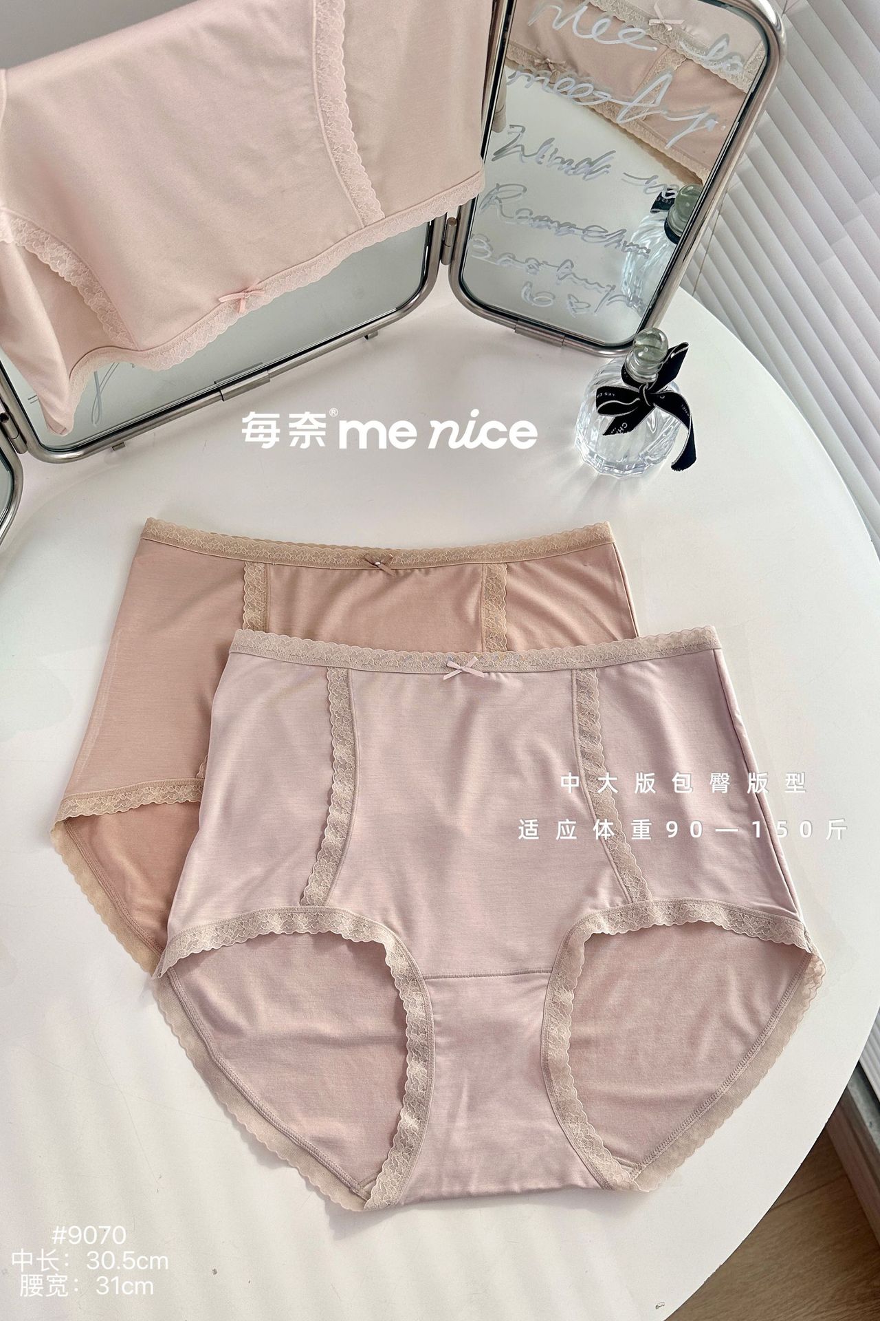 每奈9070高级感大版女士内裤高腰加肥软糯弹力舒适蕾丝花边三角裤