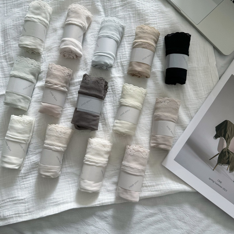 爆款莫兰迪色系蕾丝三角内裤女 宽腰中长透气纯棉女士三角裤批发