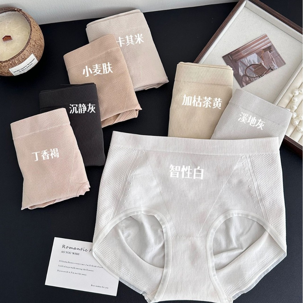 各奈2277箱入りのモランディクリーム系のアルファベットの縁の高い腰の大きい版の肌の快適な高弾の三角の下着