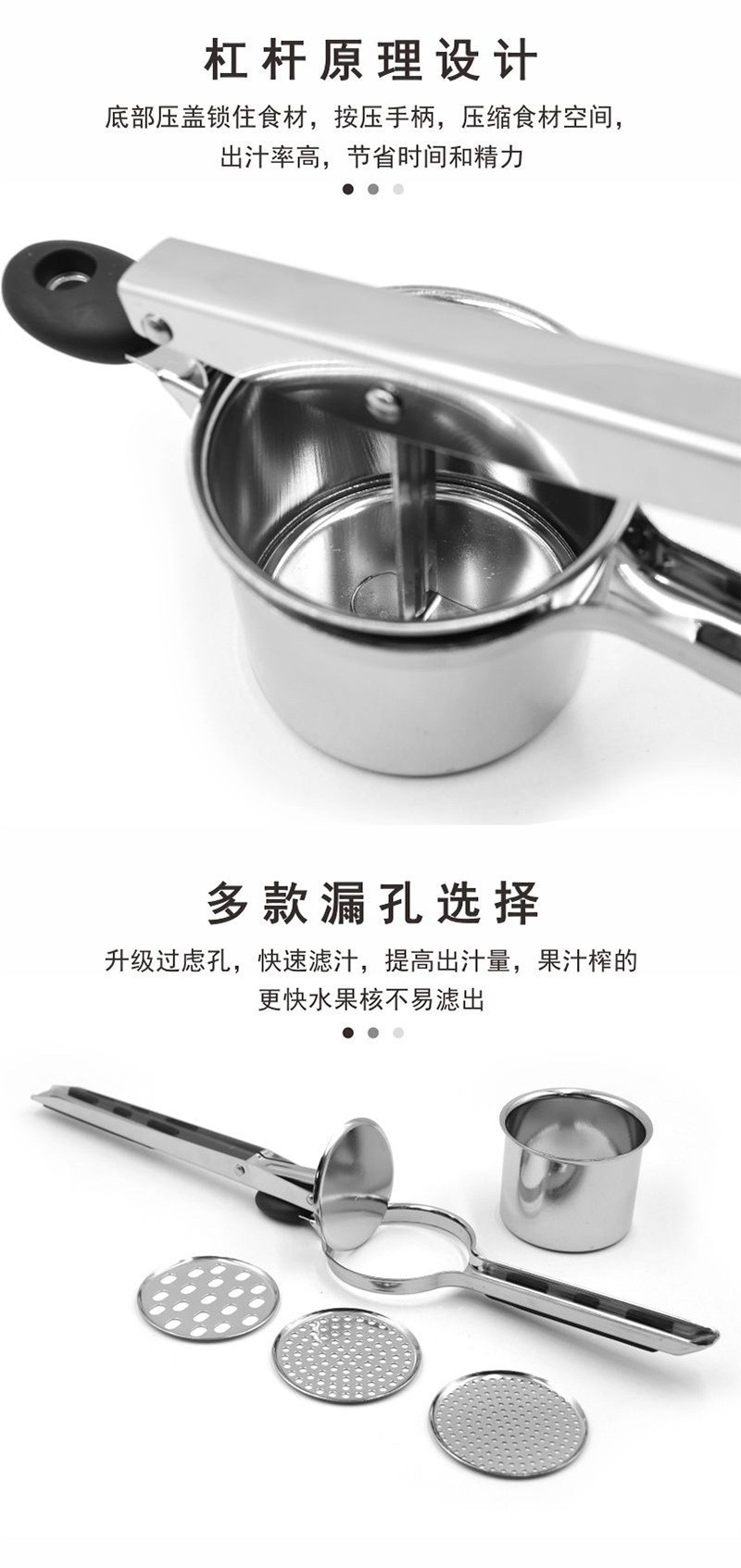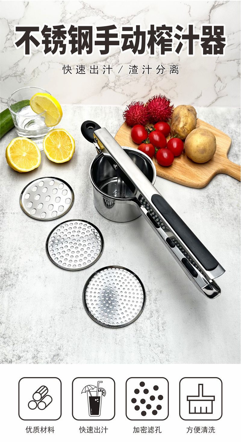 不锈钢压薯器手动压土豆泥器水果压汁器葡萄橙子石榴加厚挤汁器机