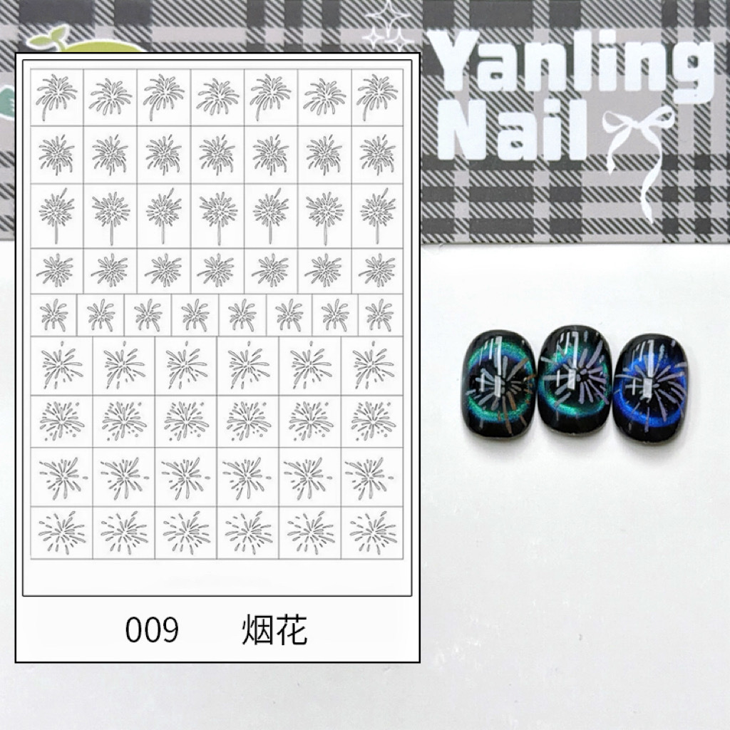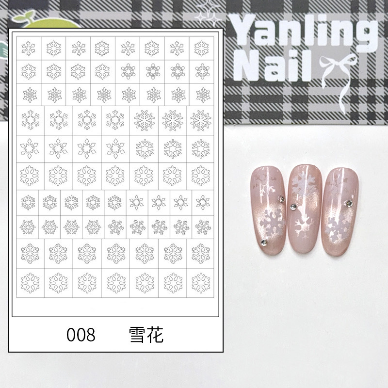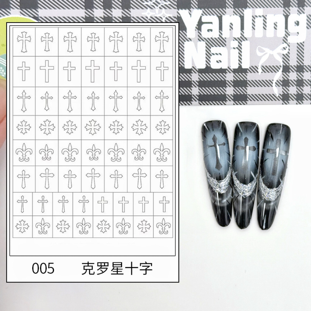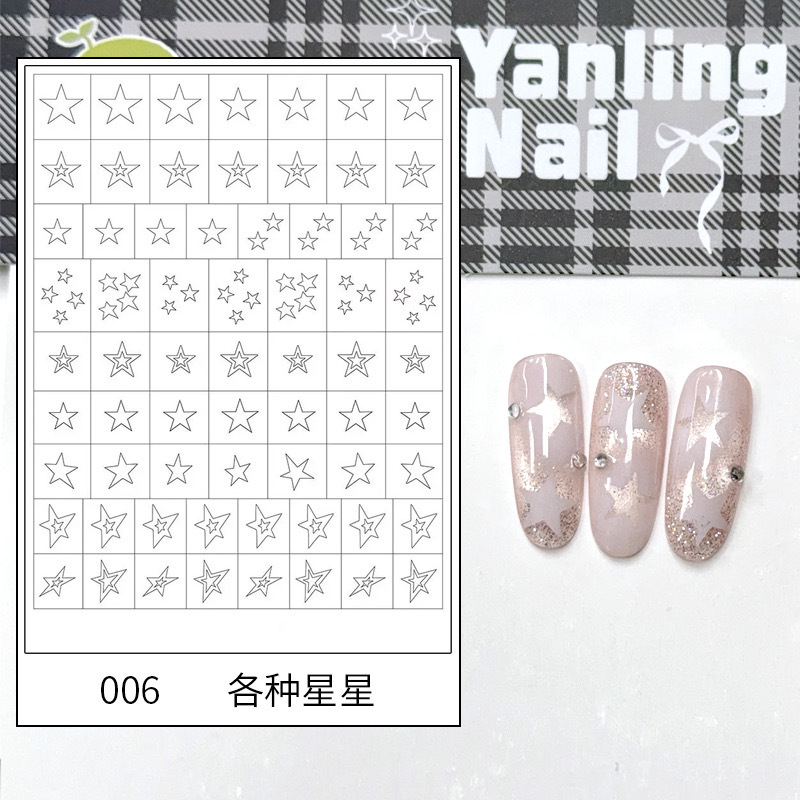 规格 001中法式,002长法式,003镂空条纹,004短法式,005克罗星十字,006各种星星,007各种星芒,008雪花,009烟花,一份贴纸只有1张