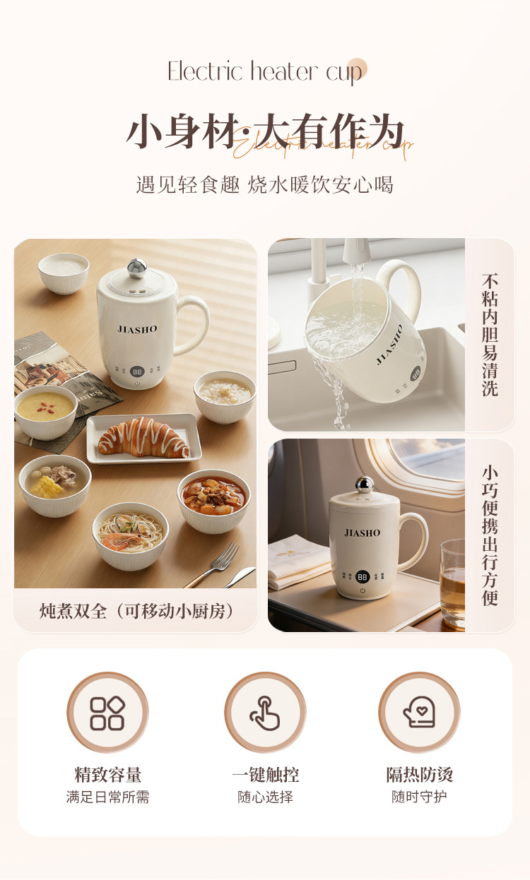 热牛奶杯办公迷你养生杯家用多功能杯早餐杯宿舍电煮杯陶瓷轴内胆