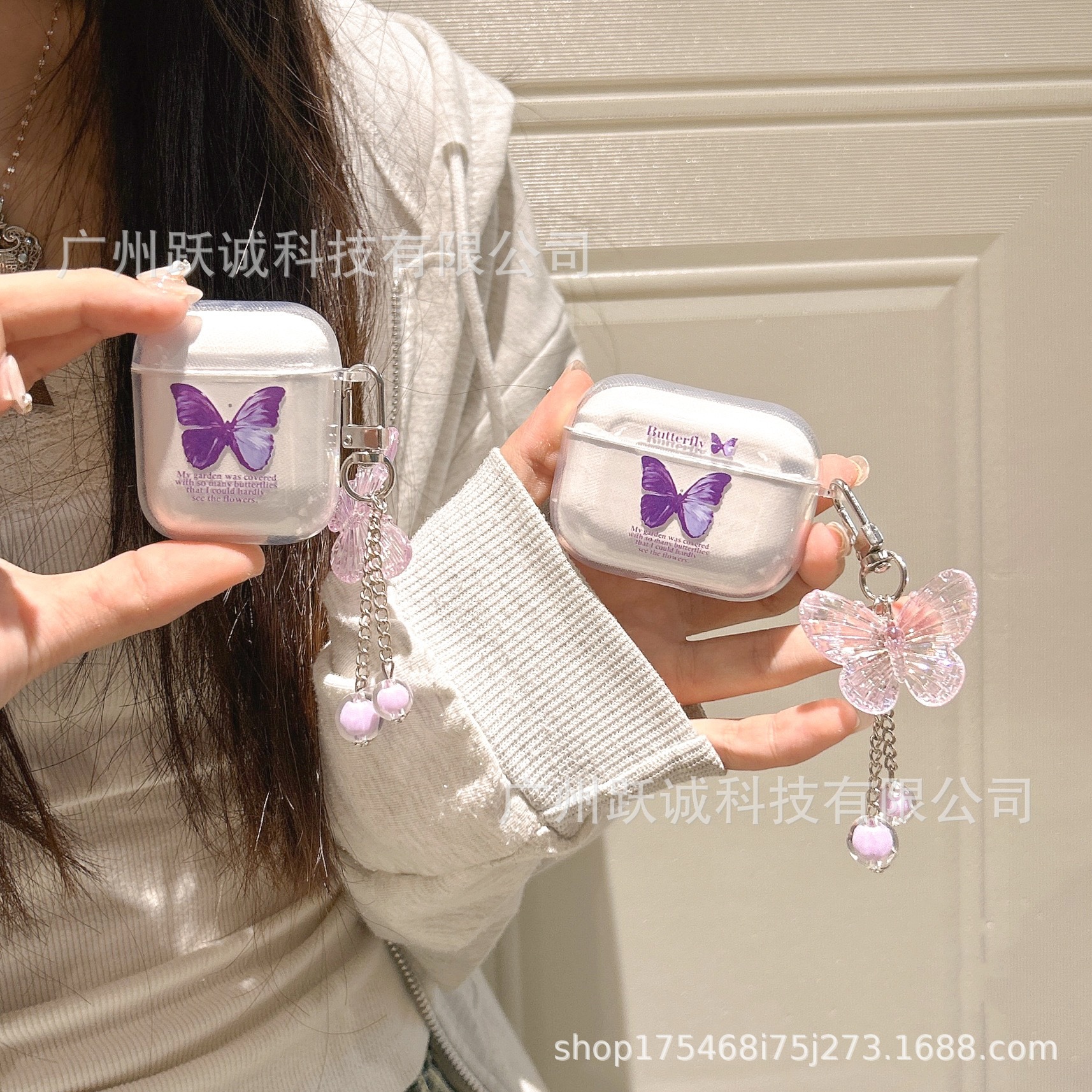シンプルな紫色の蝶はアップルのイヤホンのケースairpos 1/2世代bluetoothイヤホンの転倒防止保護ケースに適しています