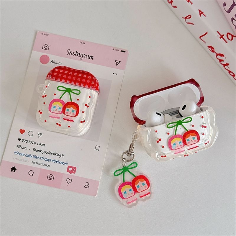 卡通格纹樱桃哭娃airpods Pro3保护套适用苹果/2/4/5代蓝牙耳机壳