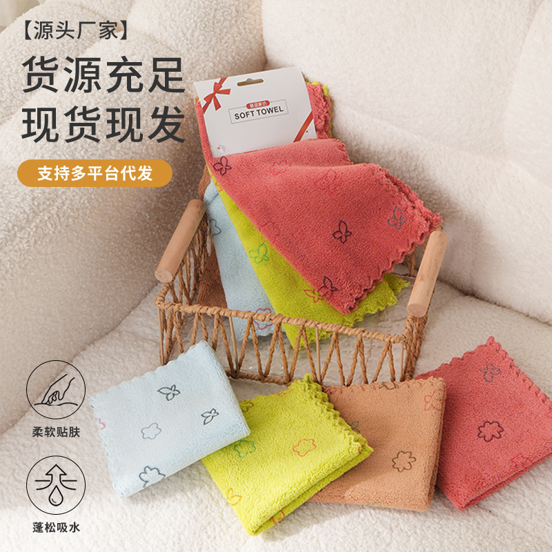 珊瑚绒小方巾柔软吸水家用儿童洗脸毛巾厨房卫生间清洁抹布可代发