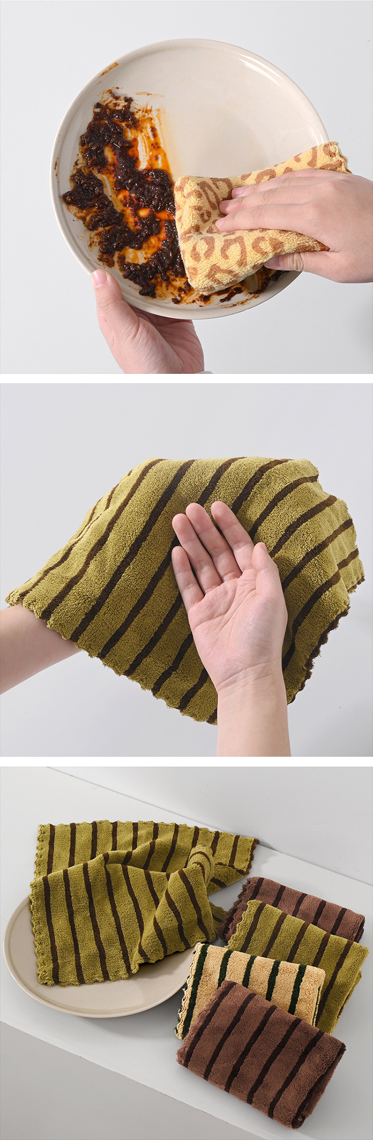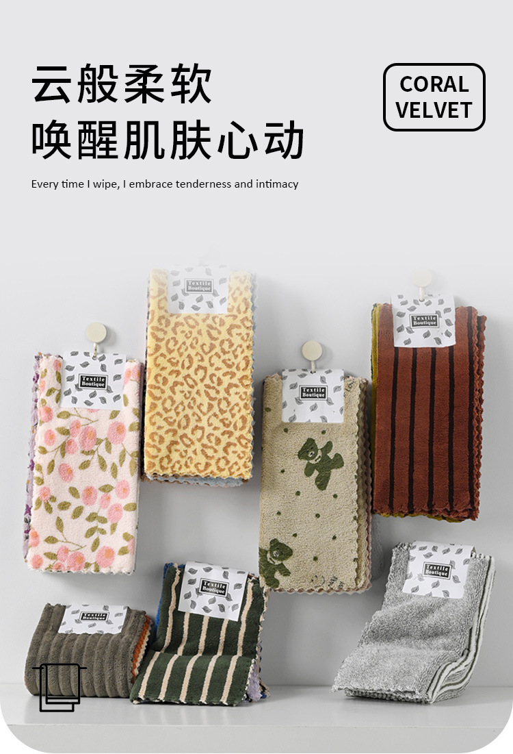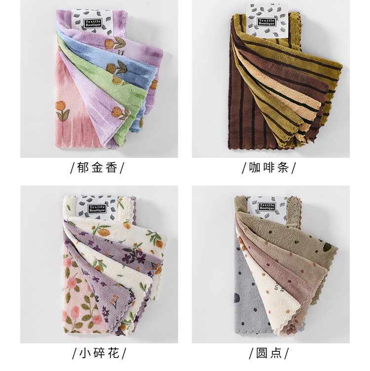 厨房抹布不易掉毛易清洗家用洗碗巾加厚珊瑚绒印花百洁布清洁方巾