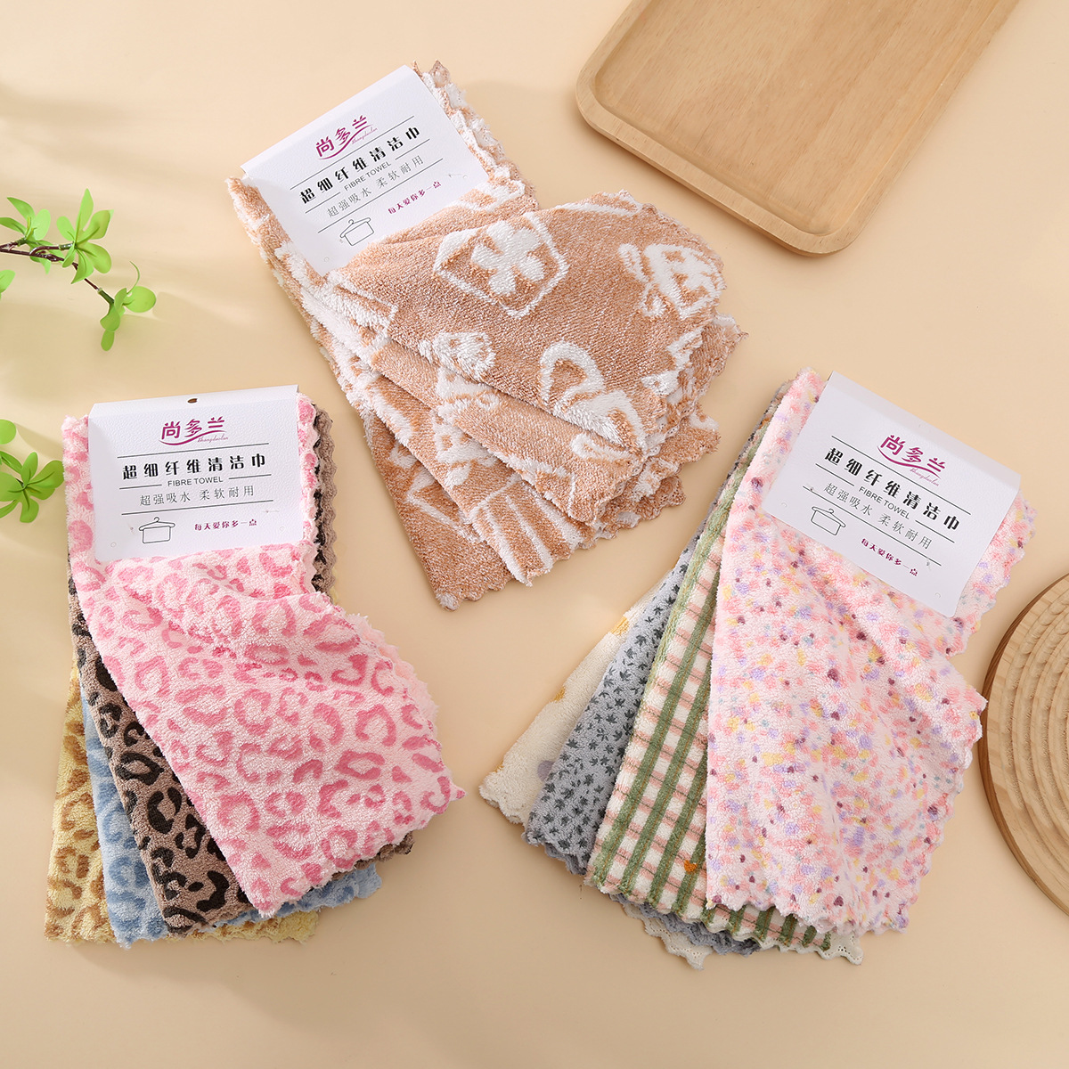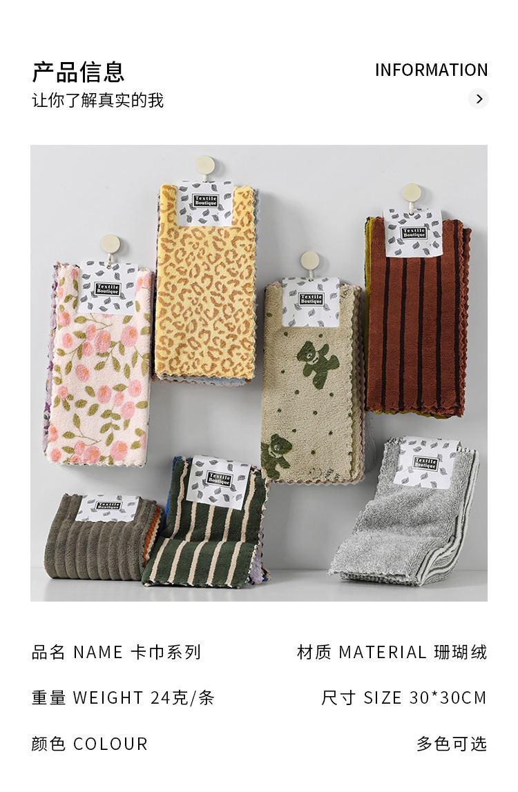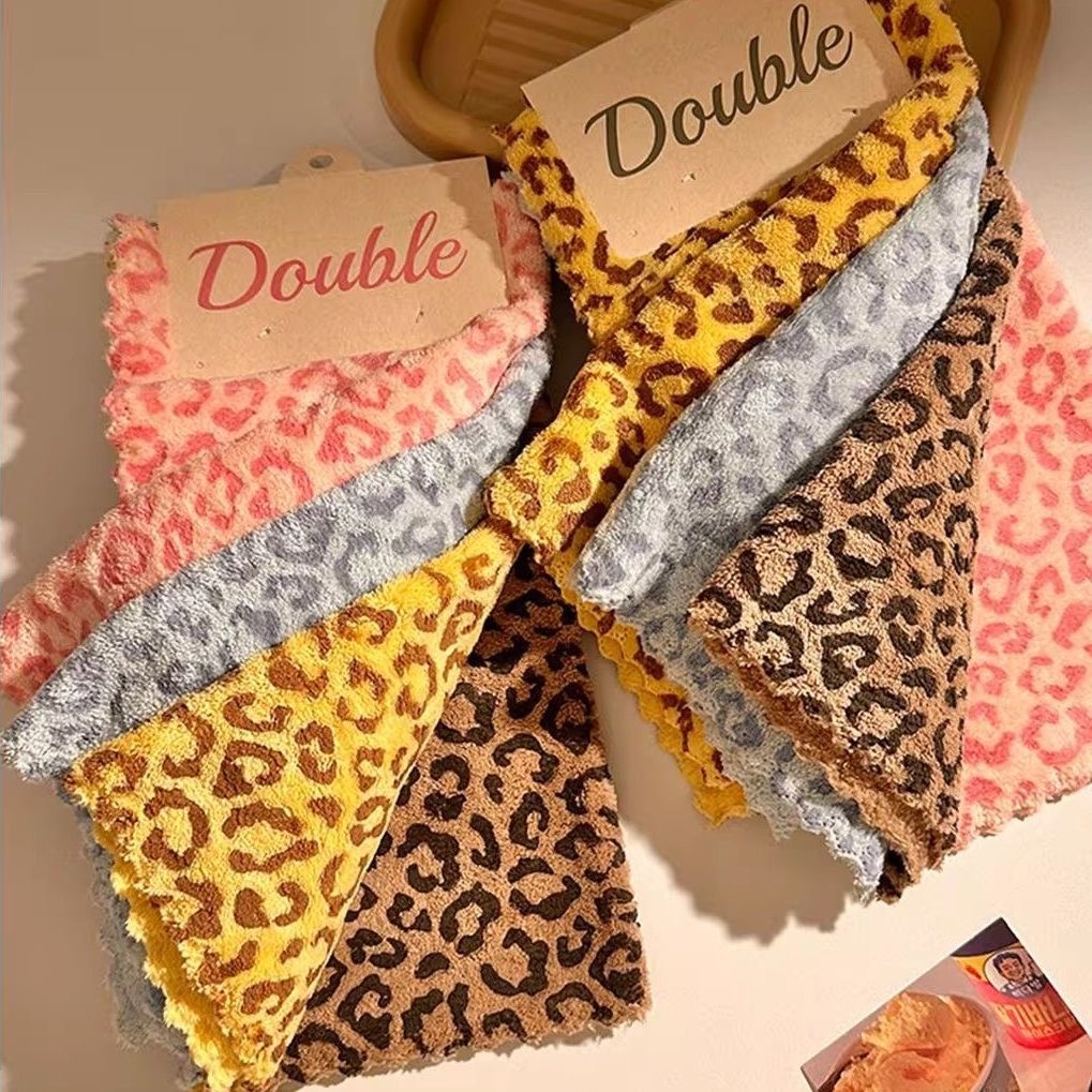厨房清洁抹布吸水豹纹小方巾可挂式方形珊瑚绒毛巾批发速干