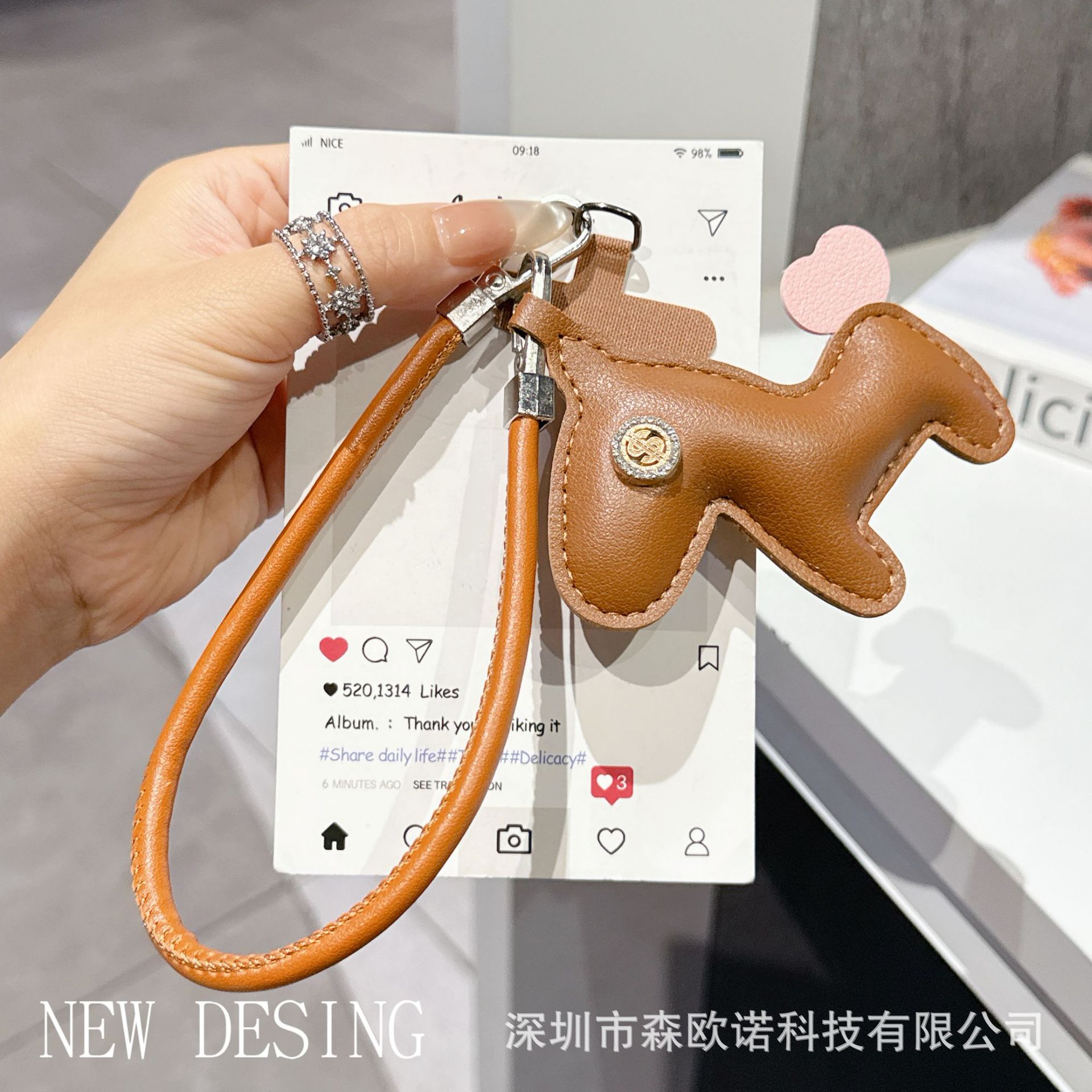 网红时尚高档皮质短绳马上有钱手机挂绳可爱汽车钥匙链包挂件批发