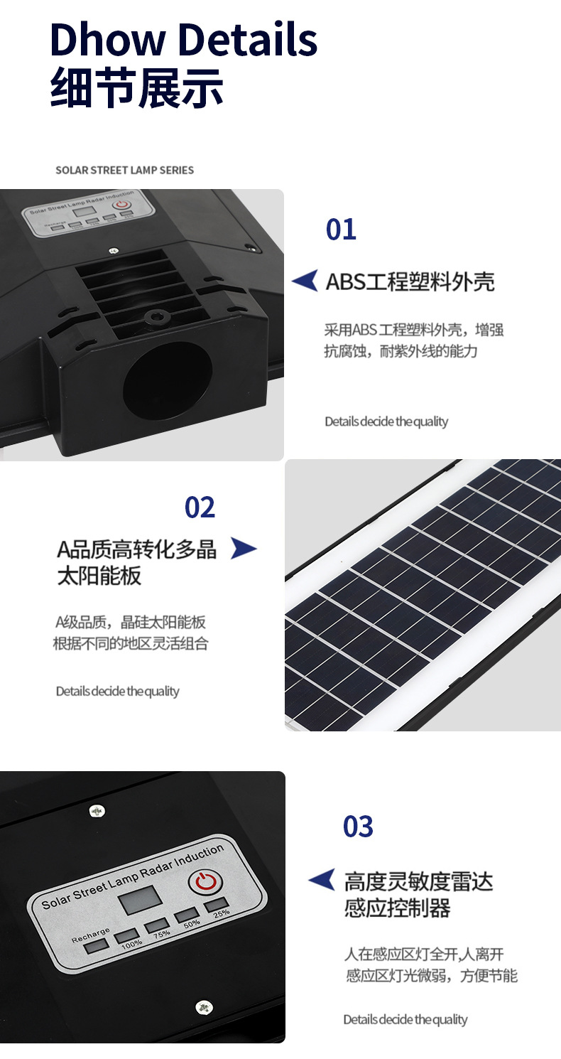 跨境新款太阳能灯花园别墅小区庭院灯天黑自动人体感应太阳能路灯