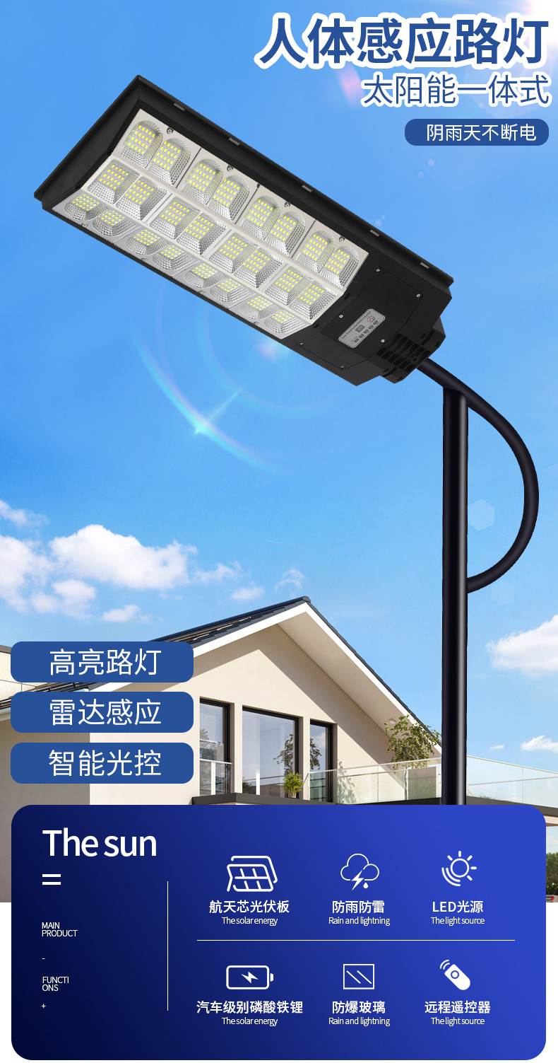 厂家太阳能路灯高亮超大功率人体感应庭院灯农村户外照明灯太阳能