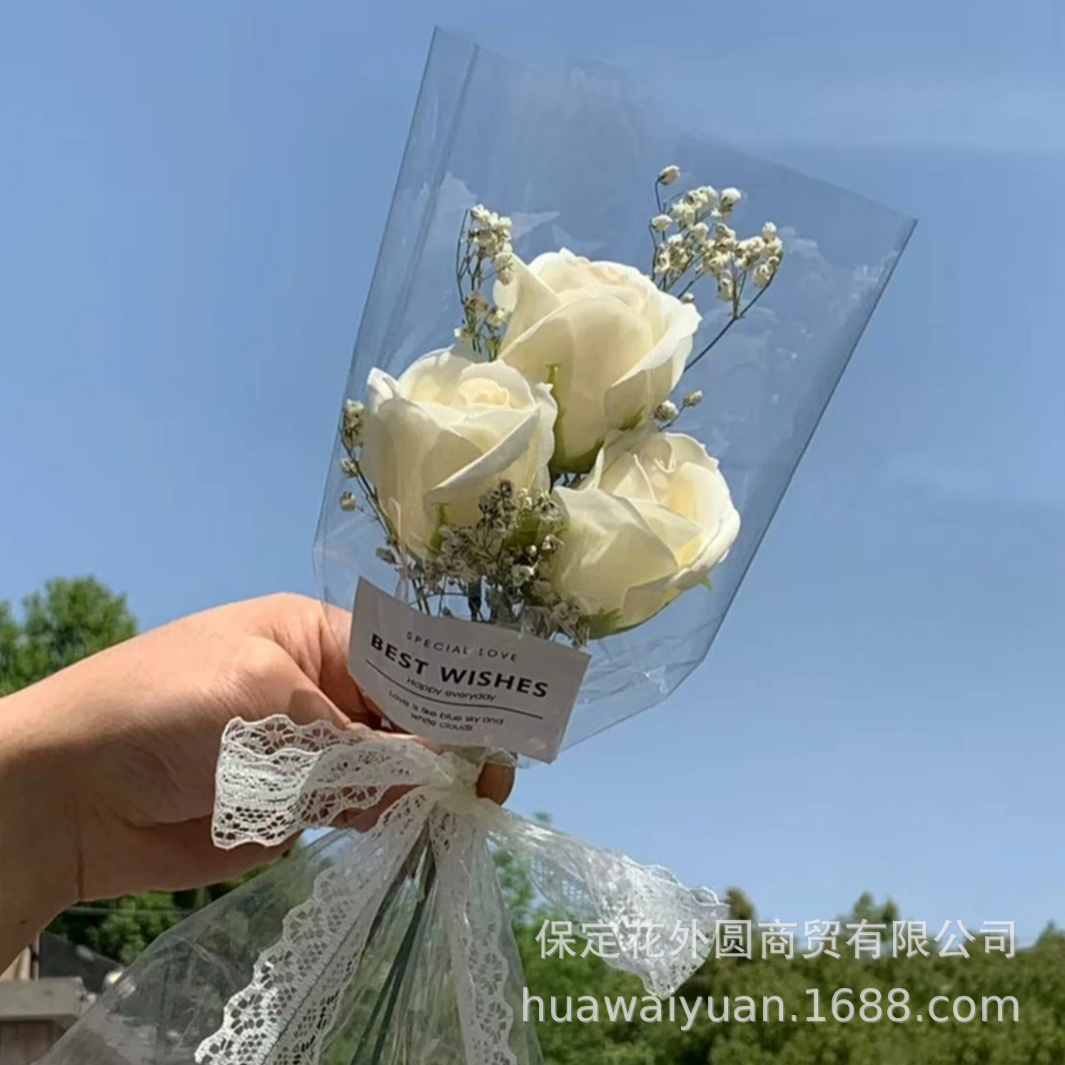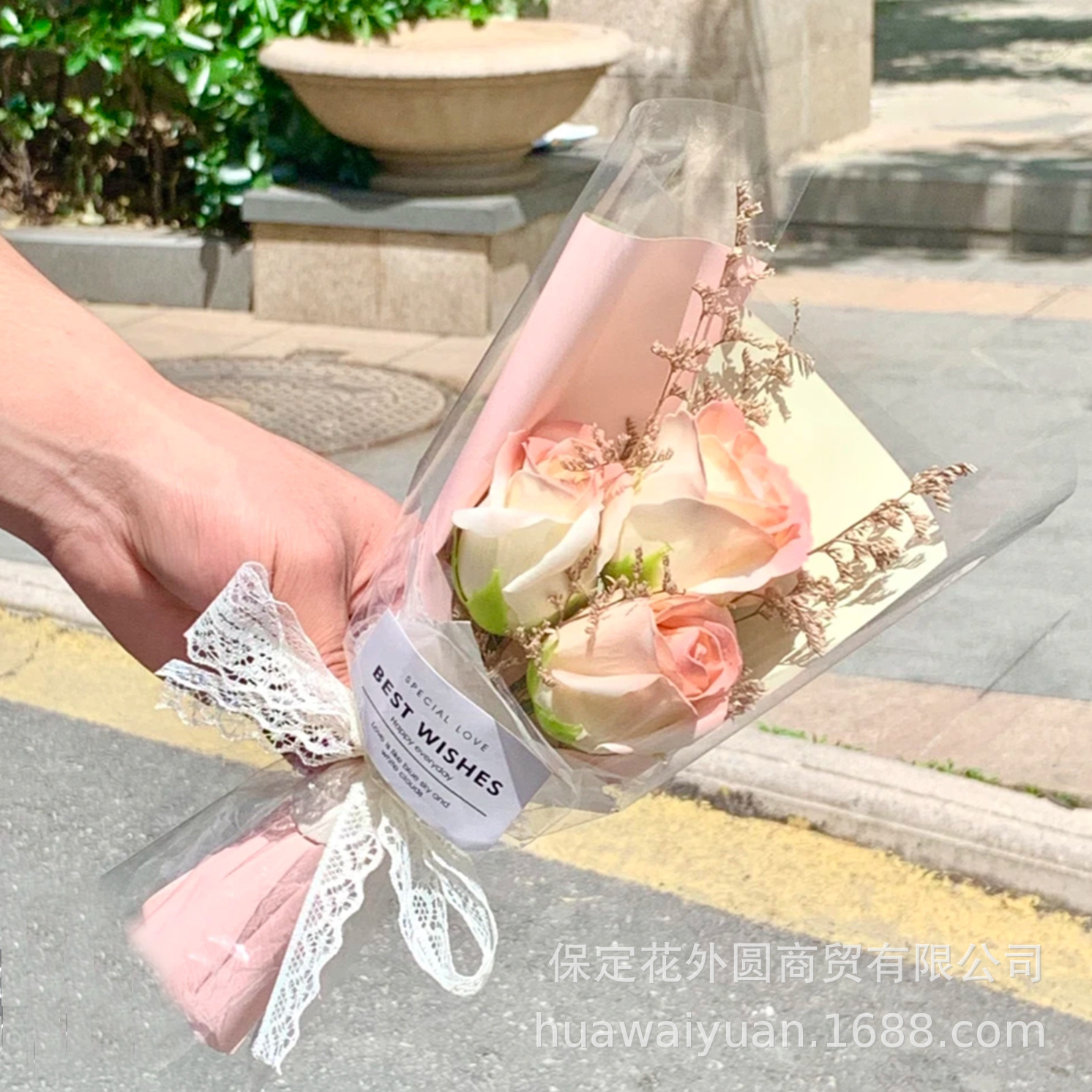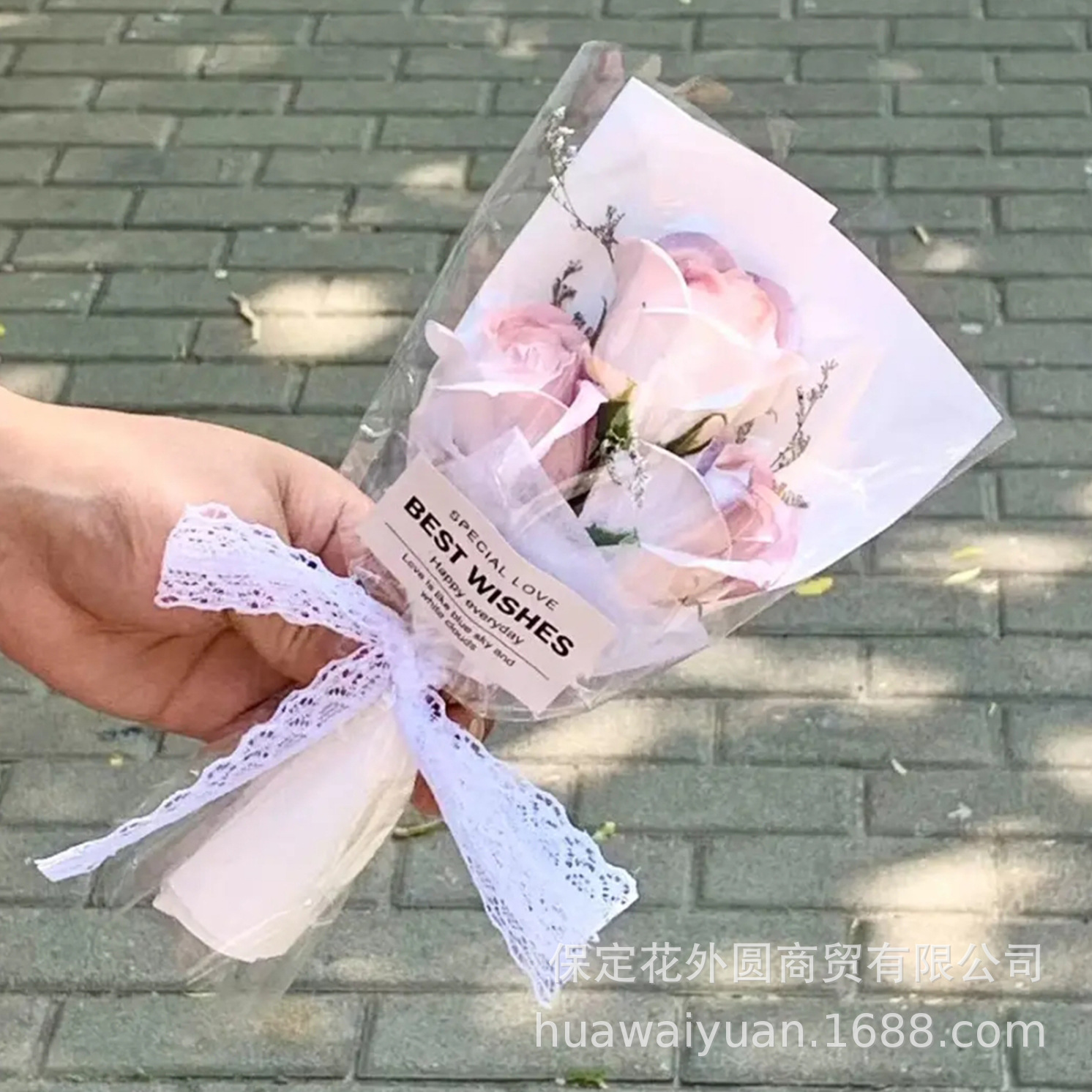 手提げ袋透明魔縁網赤手提げ袋バレンタインデー花手提げ袋花花束包装袋完成品