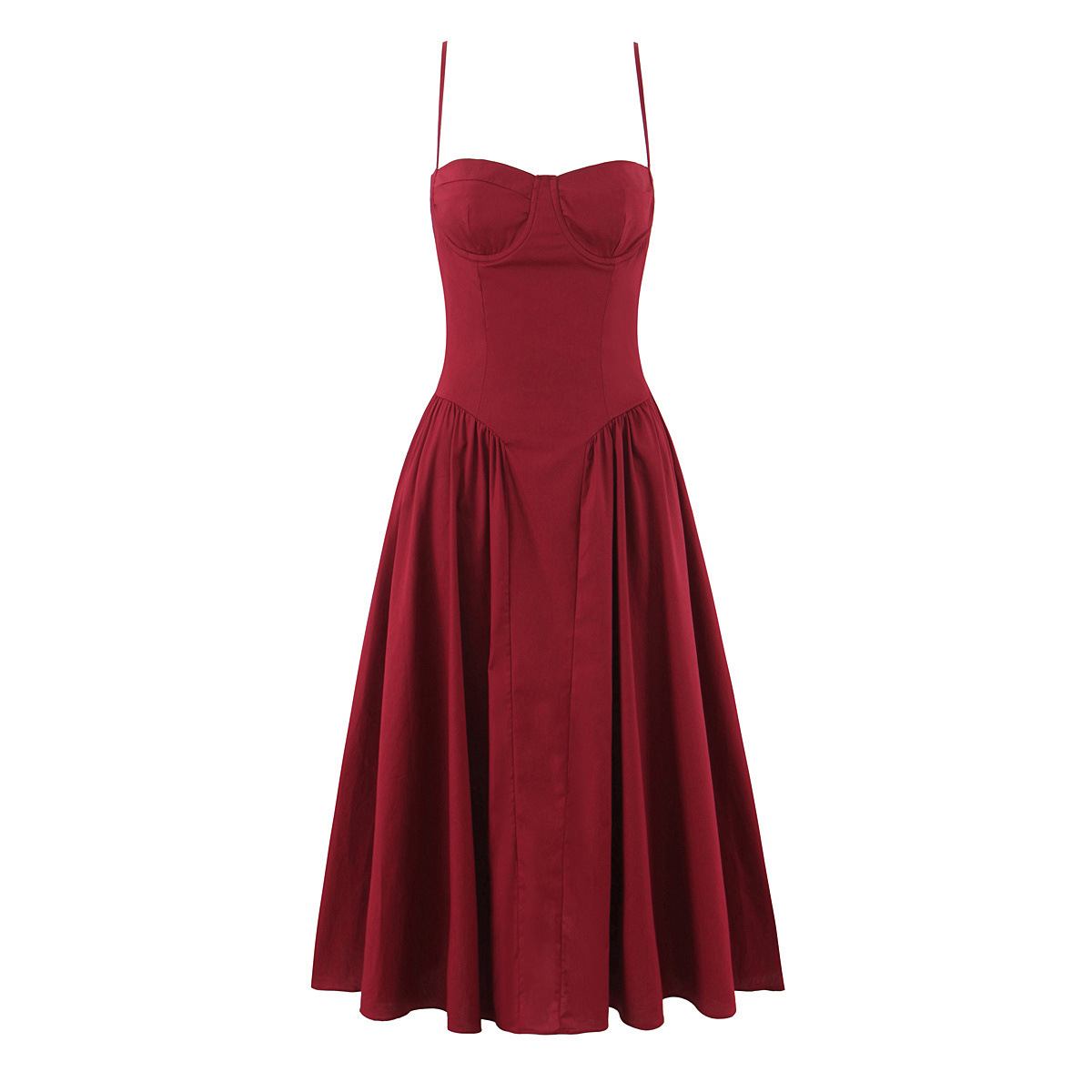 BSK&TRAF 2025秋冬新款 圣诞红立体钢圈收腰褶皱连衣裙圣诞礼服裙