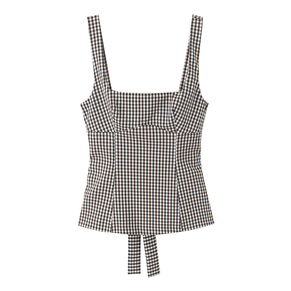 BSK&TRAF レディース 2025 夏新作 セクシー バックレス リボン装飾 小さなチェック柄トップ 3152034