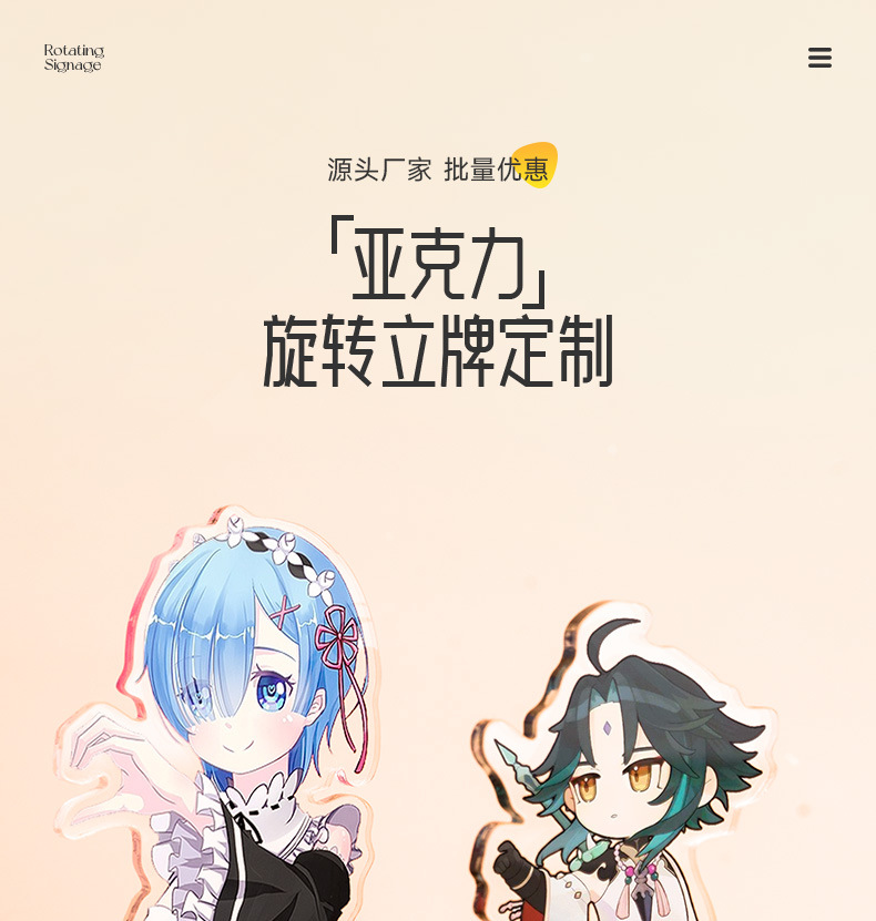 厂家定制亚克力二次元周边摆件旋转有底座桌牌卡通动漫人形立牌