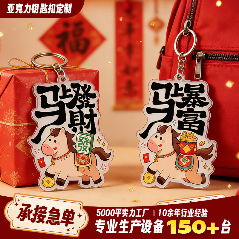 定制批发亚克力马年挂件可爱礼品创意透明diy双面卡通动漫钥匙扣