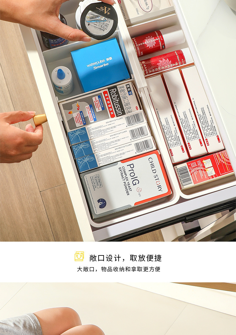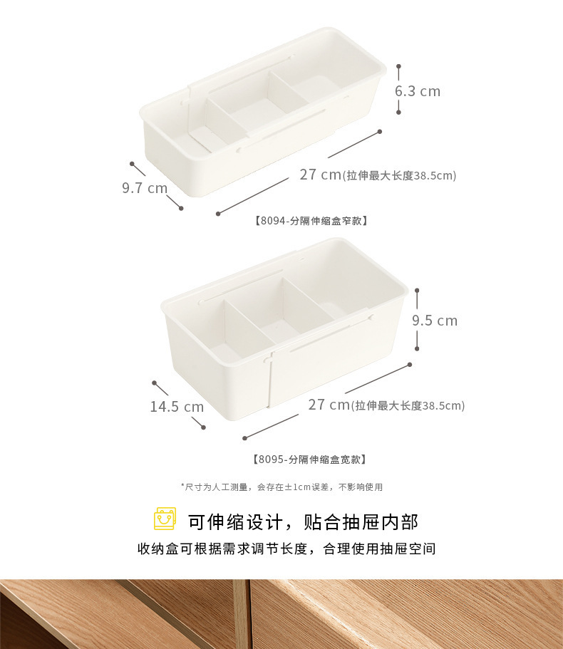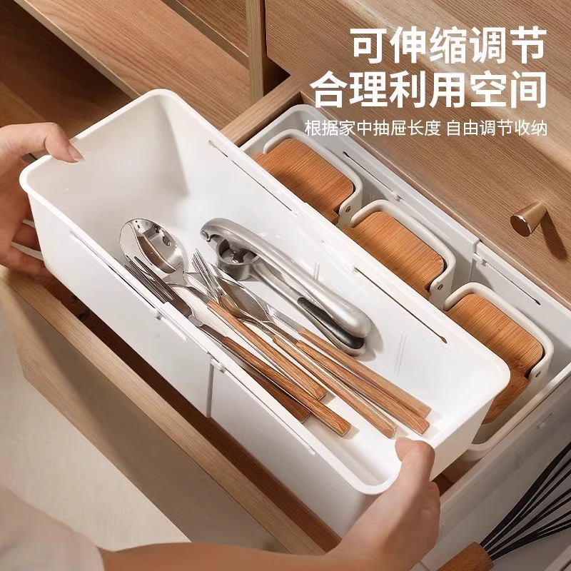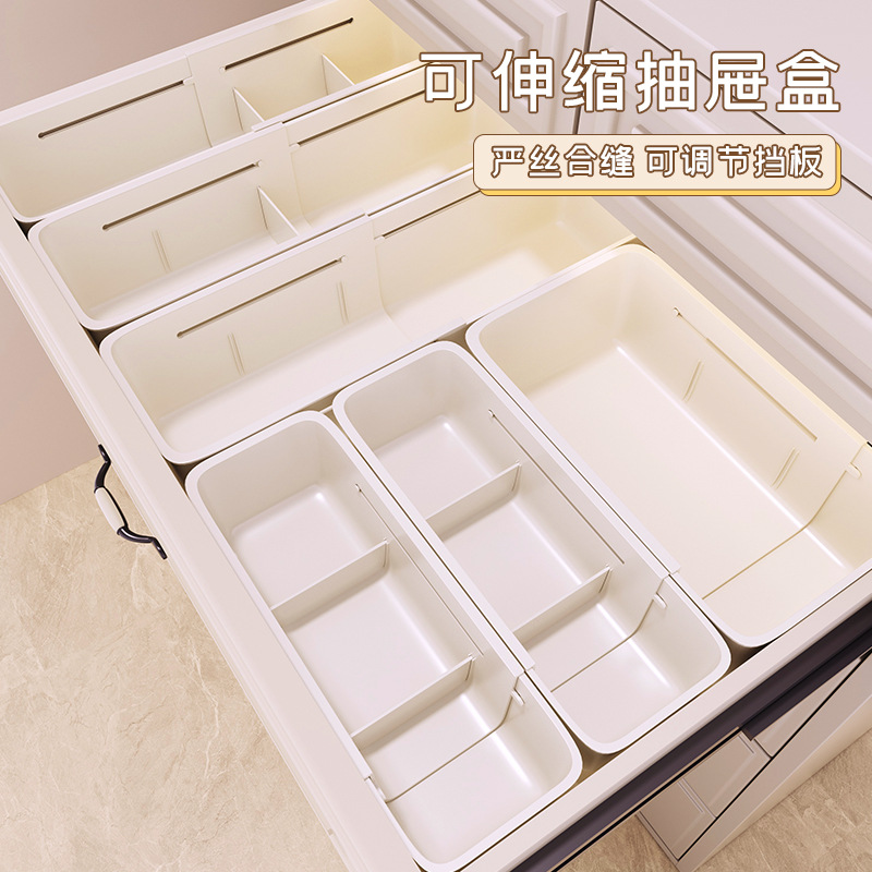 抽屉可固定伸缩收纳盒餐具整理盒家用化妆品文具药品带分隔伸缩盒