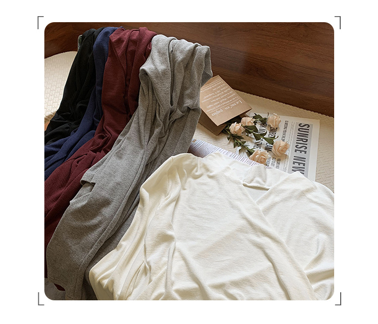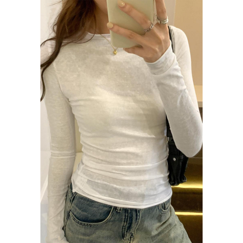 热销纯欲风粉色薄款长袖开衫T恤女初秋新款修身显瘦内搭打底衫