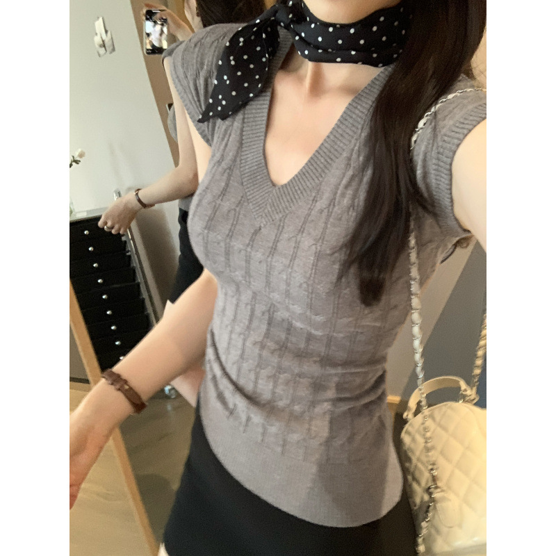 ホット販売ユニークなチョッキノースリーブニットベスト女性の夏の 2025 新デザインニッチスリム V ネックトップ