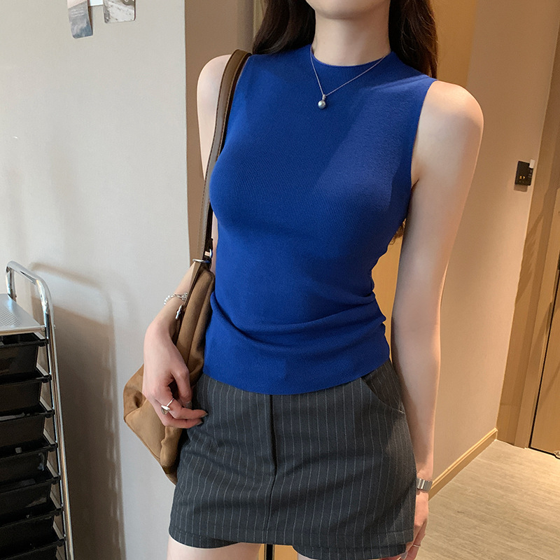 ホット販売韓国スタイル怠惰なハーフタートルネックノースリーブセーター女性のための 2025 夏の新しい美しいインナーベストトップ