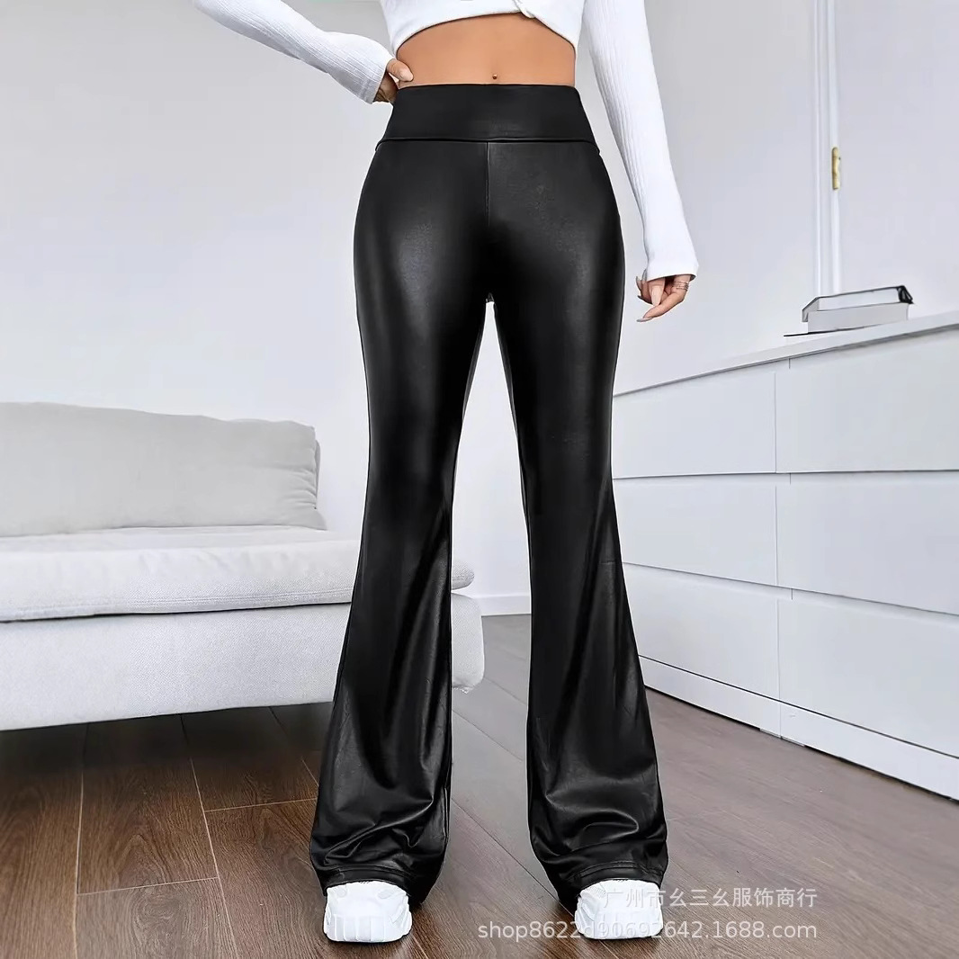 レディースマイクロフレアレザーパンツTK春秋冬ハイウエストストレッチパンツTENUホットガールトールストレートレッグフロアレングスパンツ