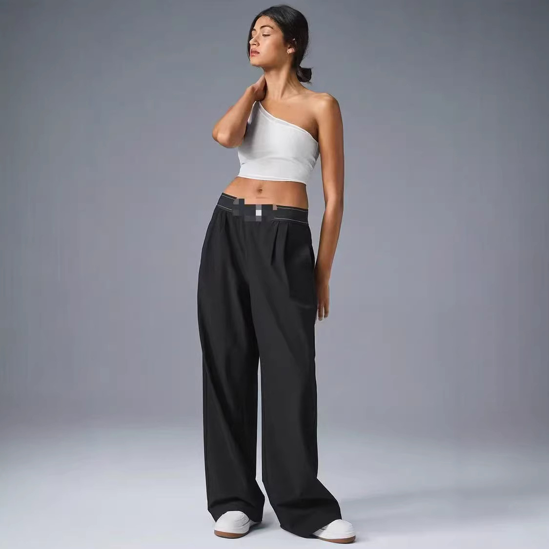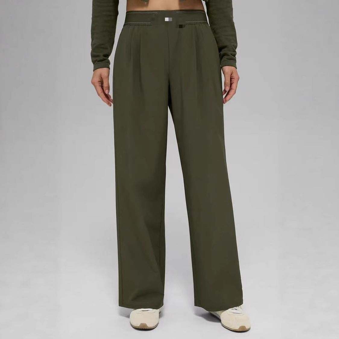 欧米の国境を越えたカジュアルなポリエステルパンツは、単色で、ストレートなデザインはロープの細部を持っていて、日常の快適さに適しています