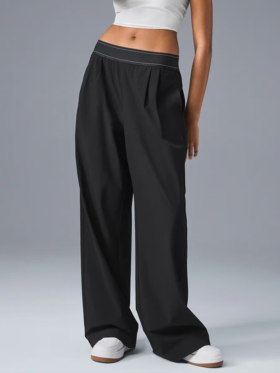 宽松休闲时尚直筒瑜伽运动长裤阔腿裤松紧腰休闲百搭速干裤子跨境