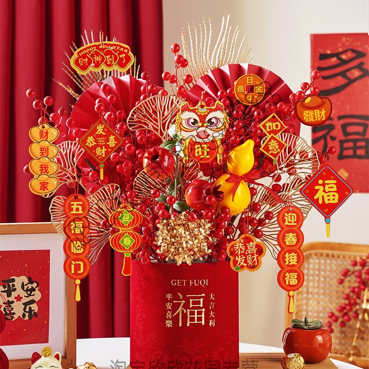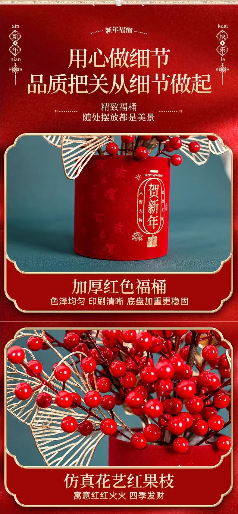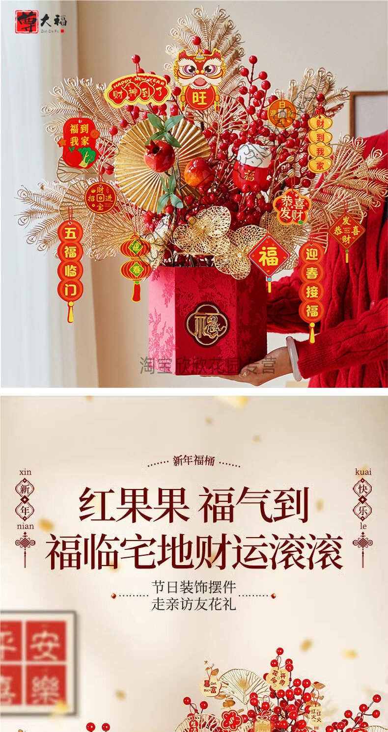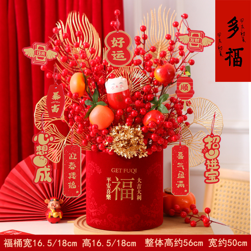 结婚春节装饰发财果乔迁之喜新居仿真花diy材料包福桶抱抱桶摆件