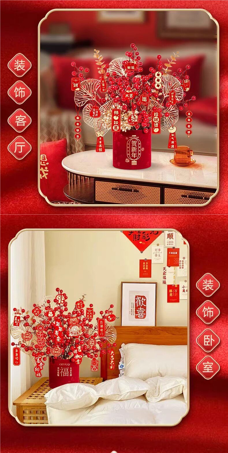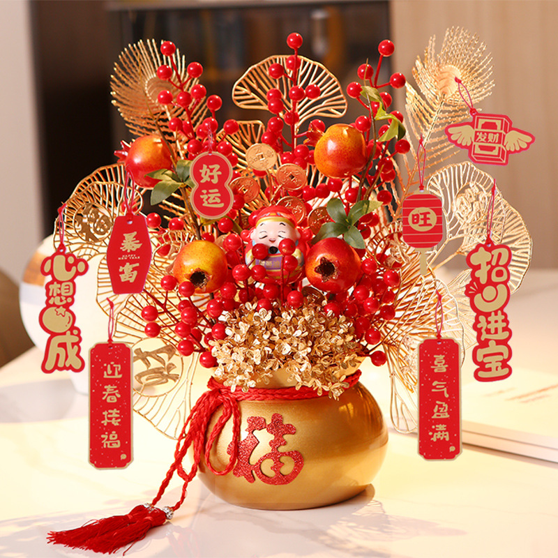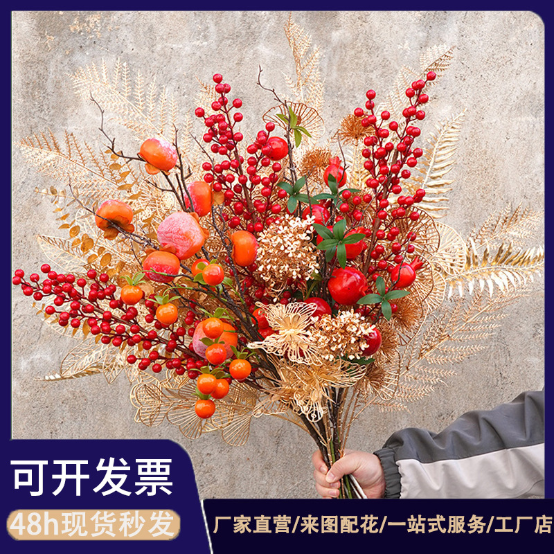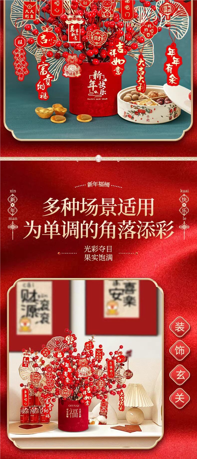 结婚春节装饰发财果乔迁之喜新居仿真花diy材料包福桶抱抱桶摆件
