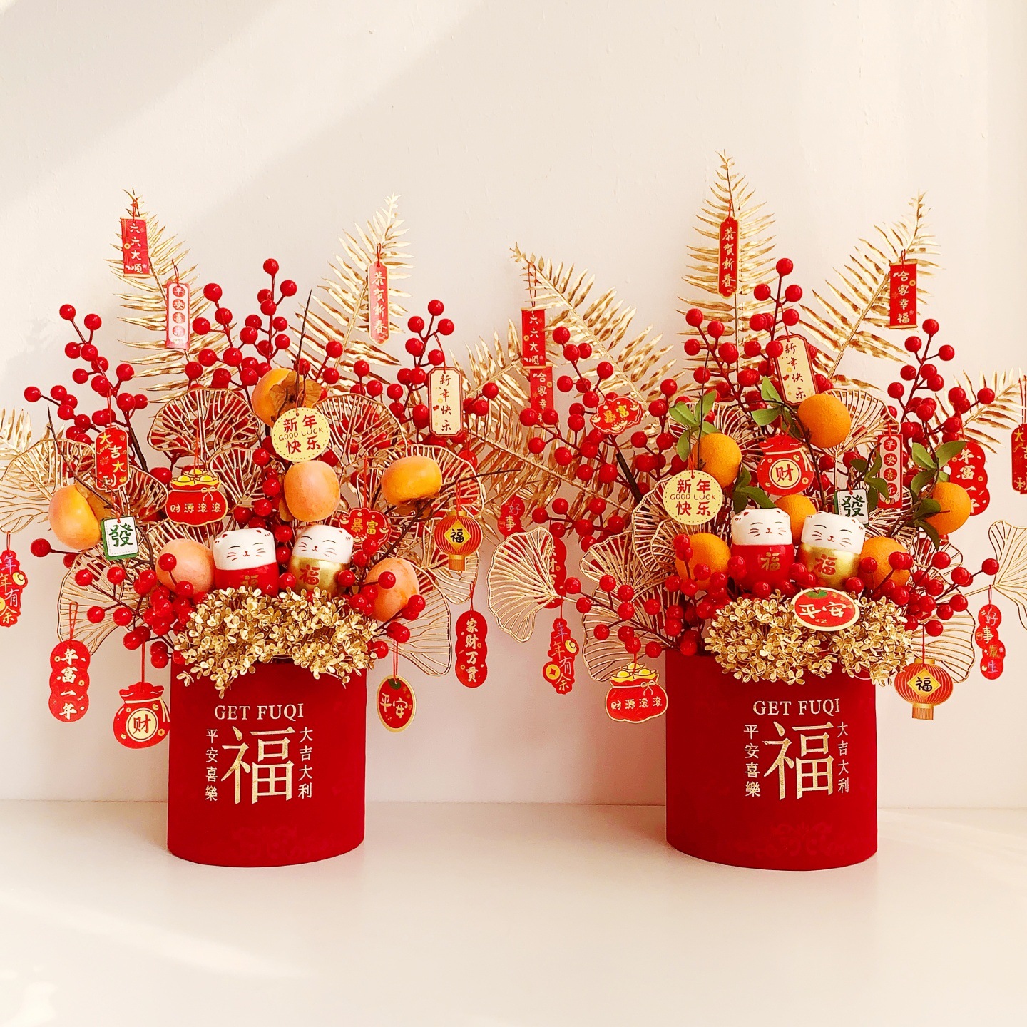 新年福桶diy材料包抱抱桶花束摆件发财果年宵花装饰手工礼物花桶