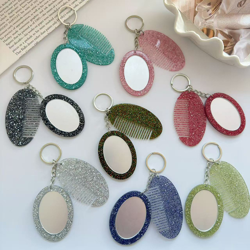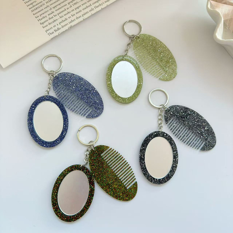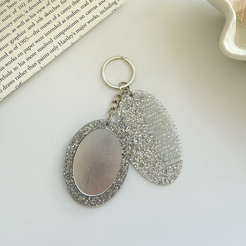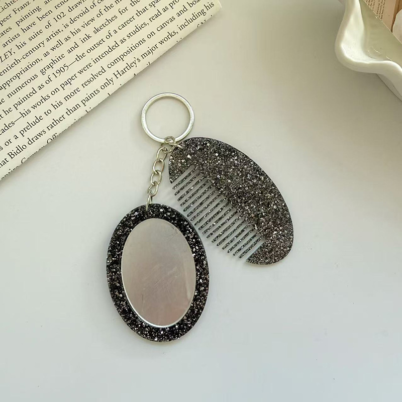 亚马逊椭圆梳子镜子挂饰高级感闪粉套装包包汽车钥匙扣挂件配件